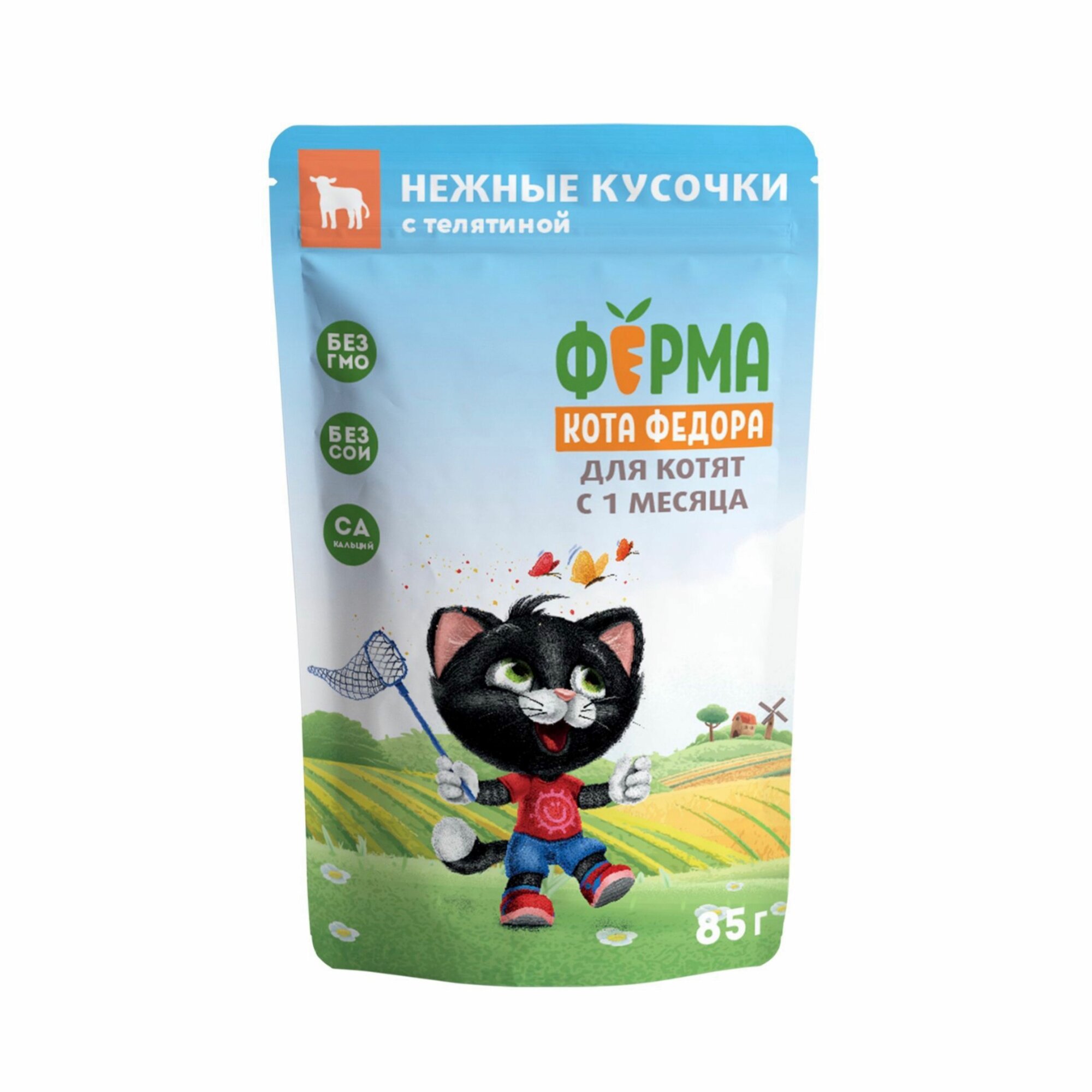 Ферма кота Фёдора 7176342 пауч для котят нежные кусочки с Телятиной 85г 128 ₽