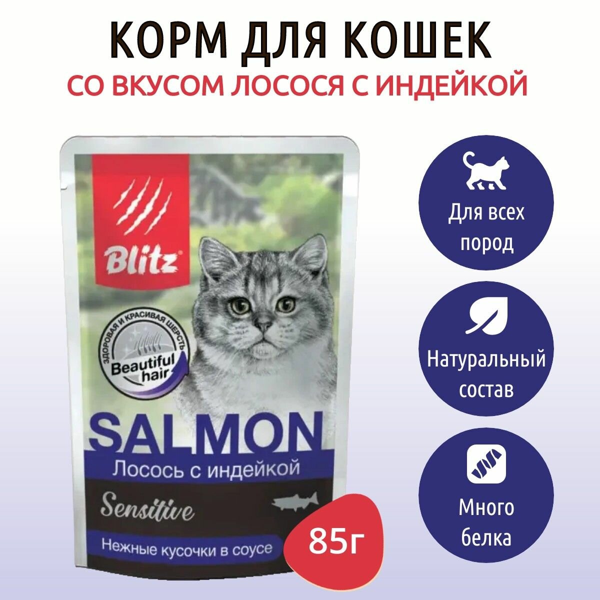 BLITZ Лосось с Индейкой в соусе для кошек 85 г*48 информация: