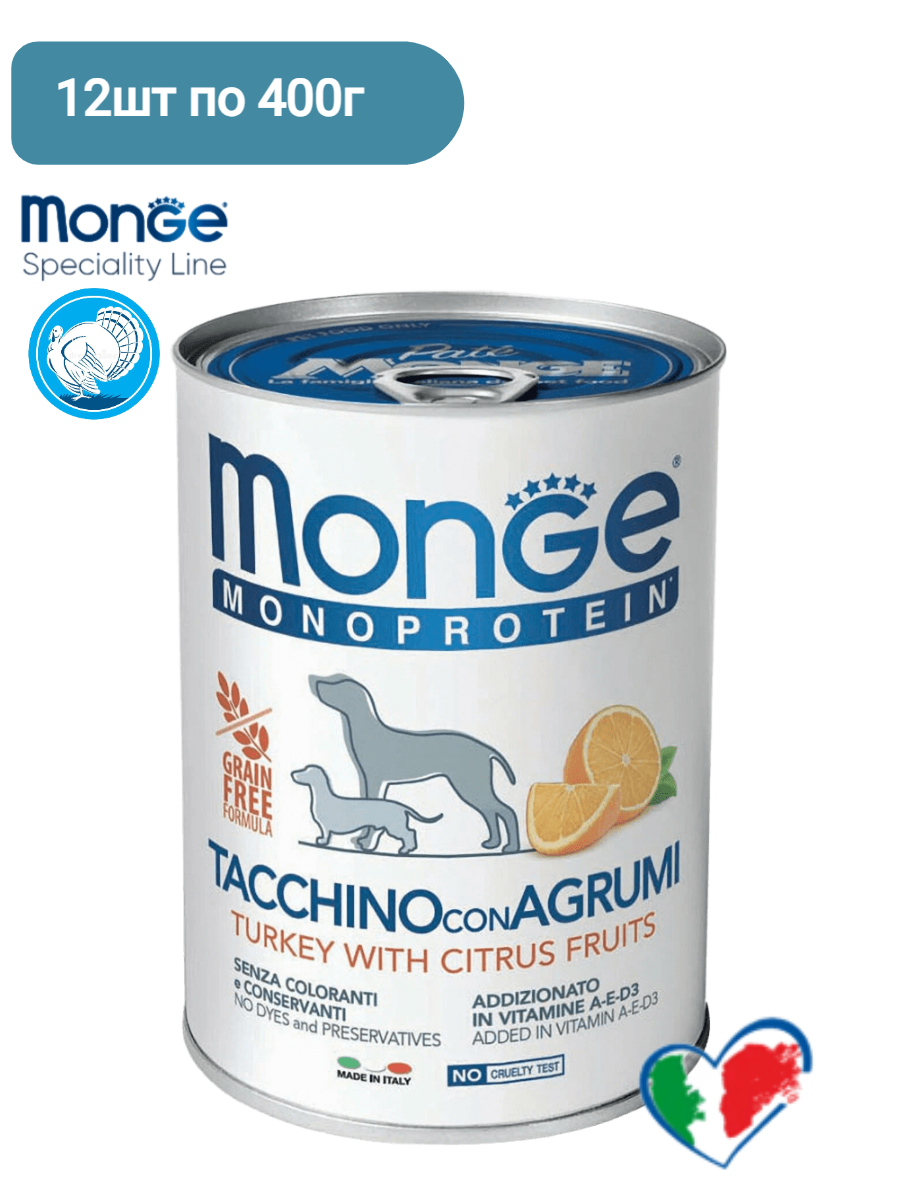 Корм для собак "Monge" из индейки с апельсином, 12 шт по 400 грамм информация: