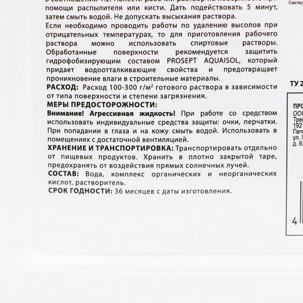 Очиститель фасадов prosept salt cleaner для удал. минер. и фосфатн. высолов 1л