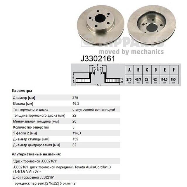 Диск торм. (упаковка 2 шт.), NIPPARTS J3302161 информация: