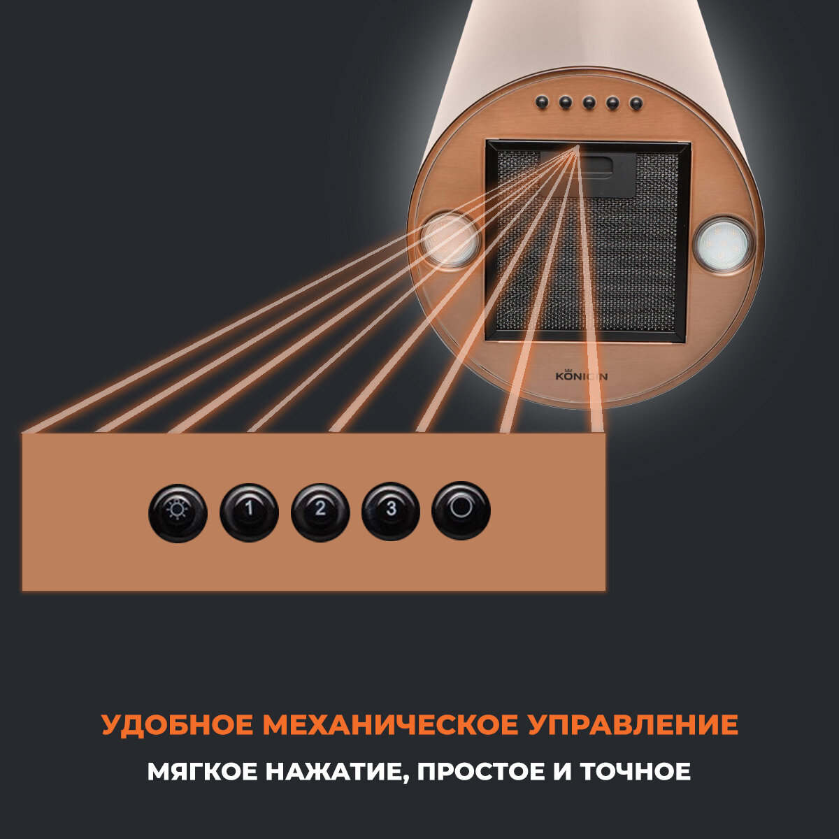 Вытяжка для кухни Konigin Beauty Copper 31 цилиндрическая информация:
