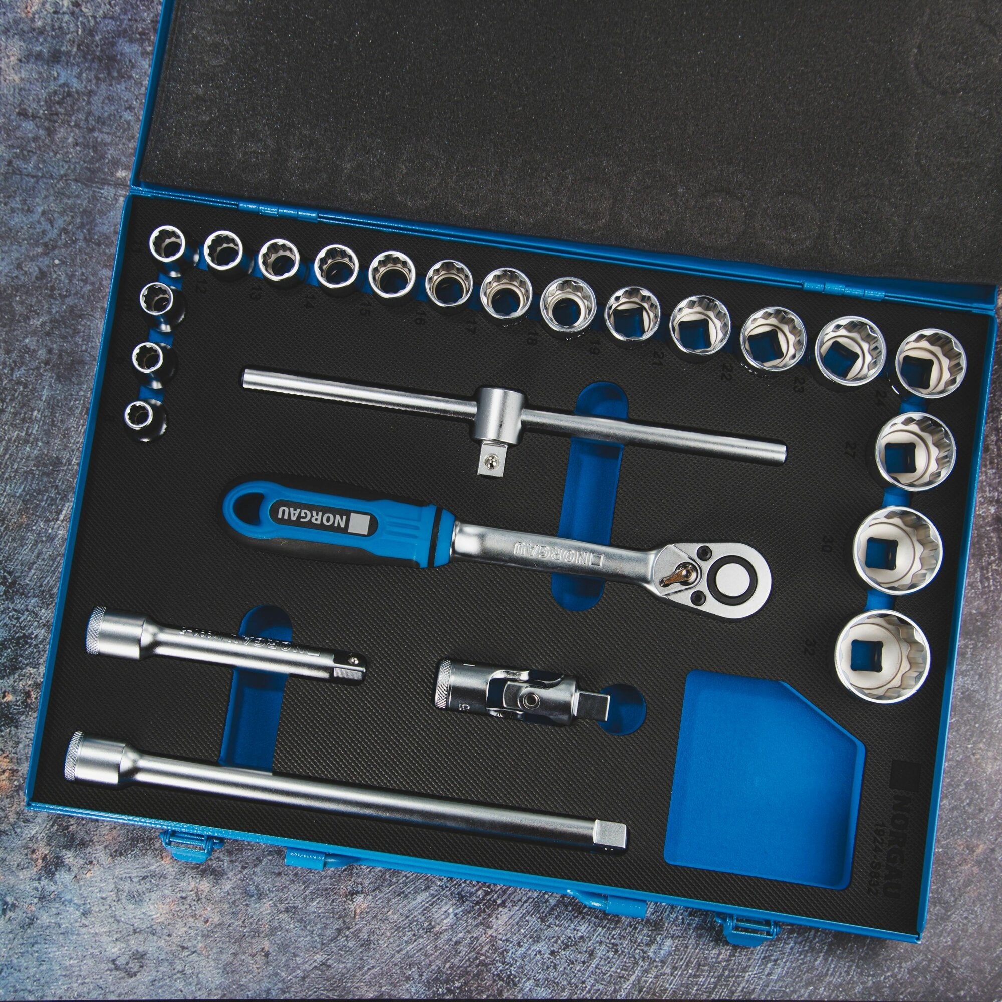 Набор головок 1/2 c трещоткой NORGAU Industrial, (8-32 мм), 24 предмета, 12-гранные информация: