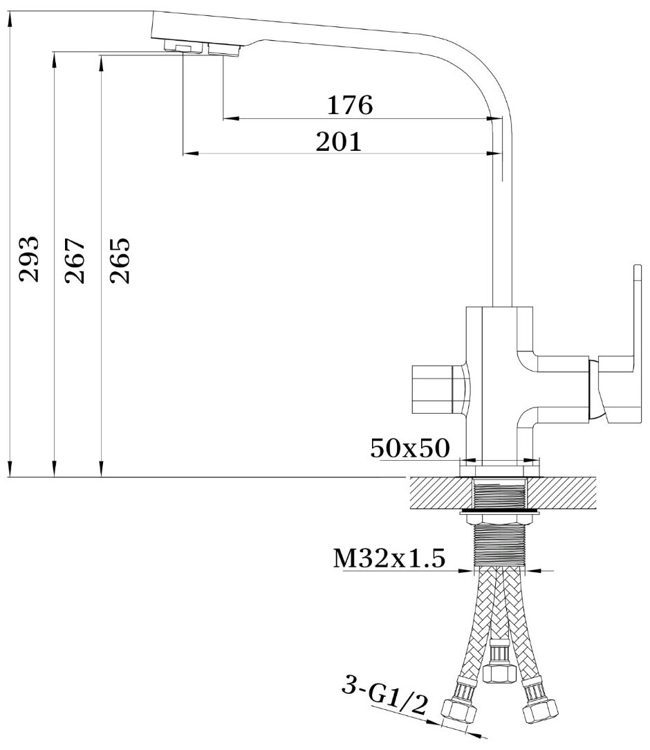 Смеситель для кухни GANZER GZ 12025A с подключением к фильтру питьевой воды