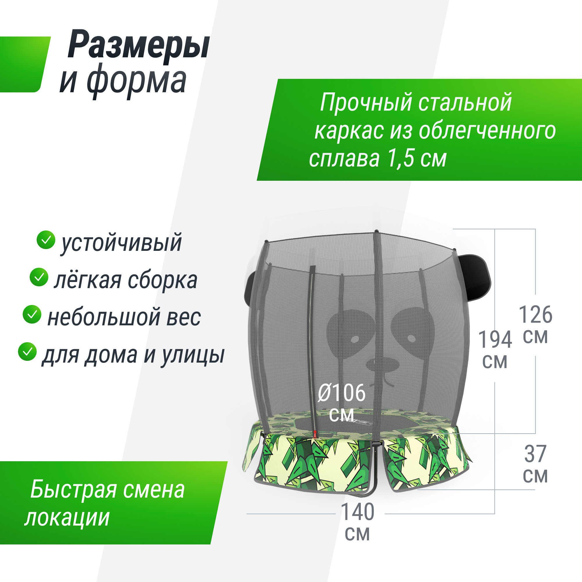 | Высота защитной сетки | 126 см |