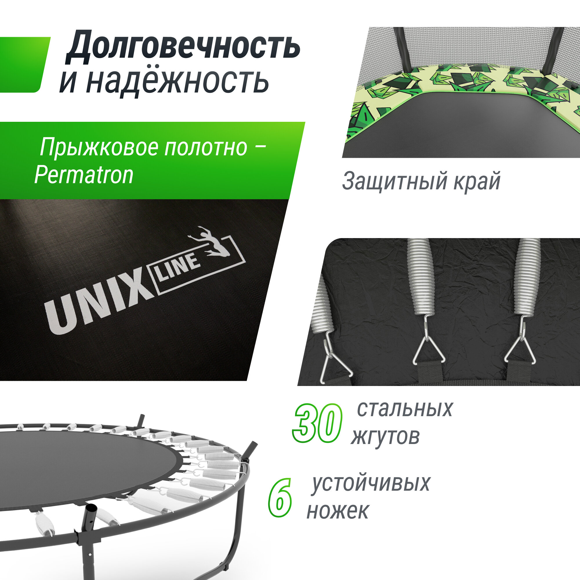 Батут каркасный UNIX Line UFO 8 ft Green, диаметр 244 см, до 150 кг, с внутренней защитной сеткой, для дома и улицы