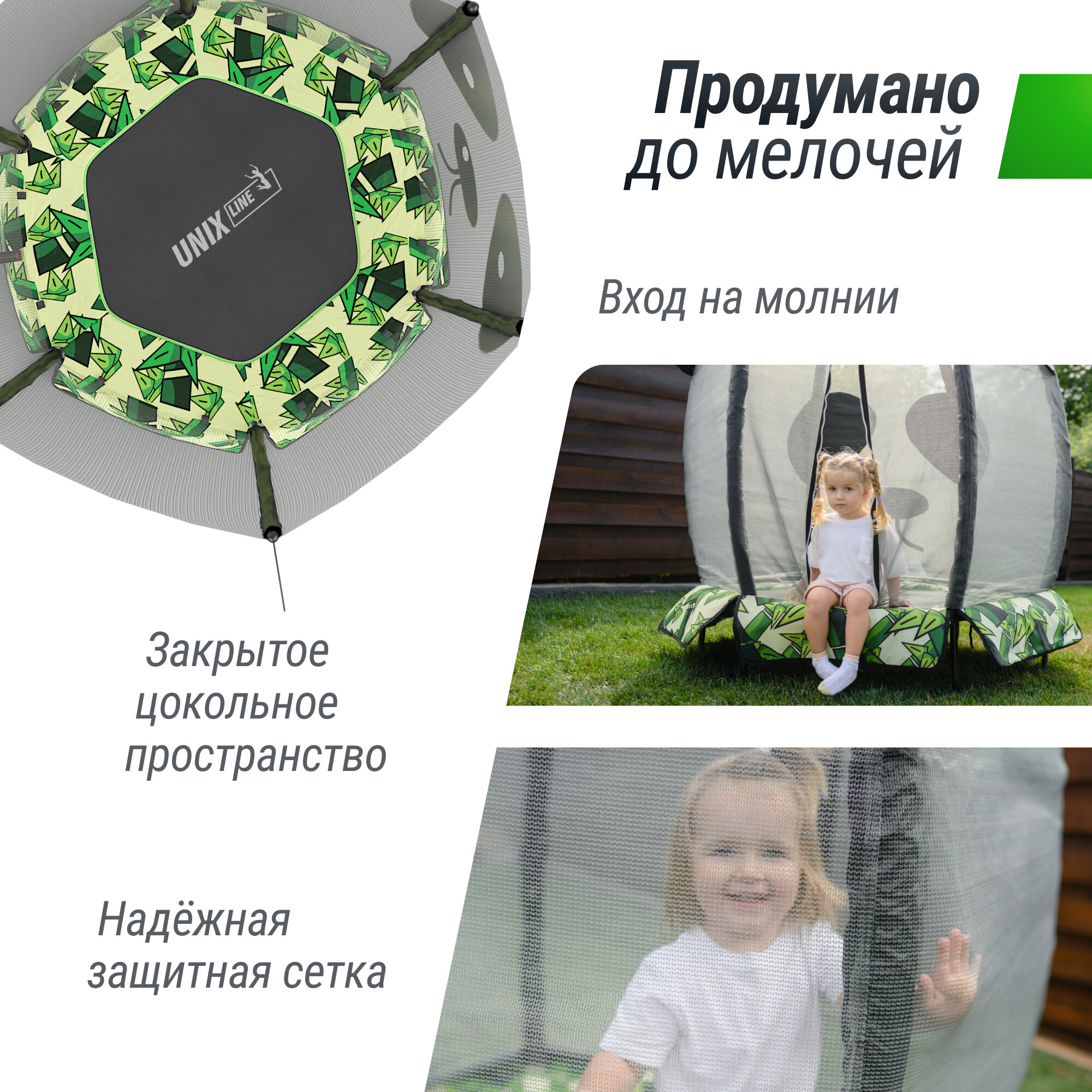 Каркасный батут Unix Line 4.6ft Panda 140х140х162 см , зеленый