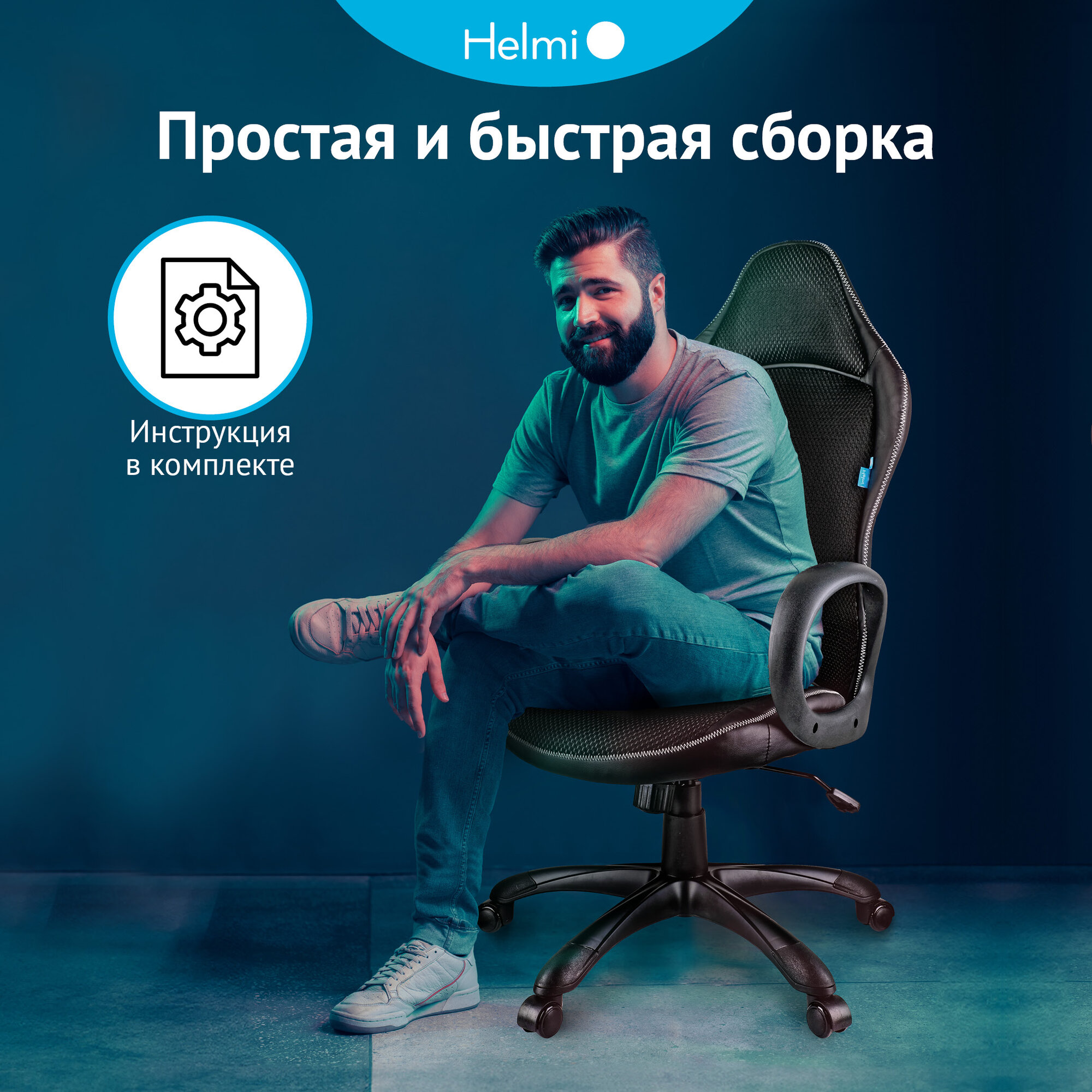 Отзывы на Кресло компьютерное, игровое, офисное Helmi HL-S02 Virage для мужчин/женщин/подростков из ткани с экокожей / регулируемый реклайнер с колесиками, подлокотниками, газлифтом