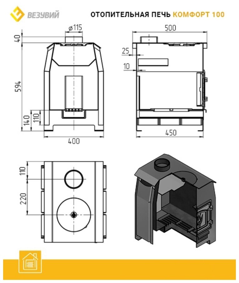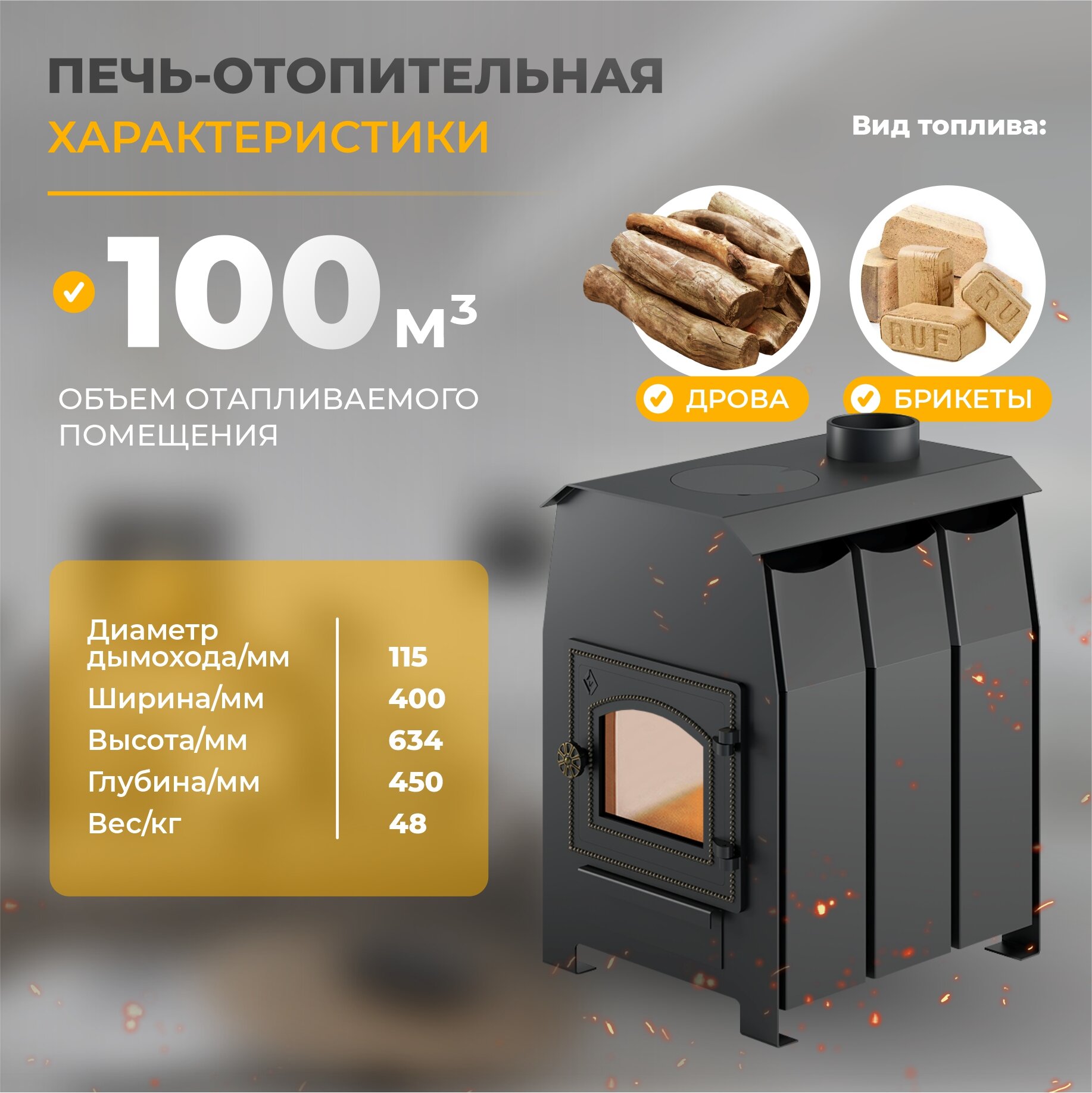 Печь отопительная Везувий Комфорт 100 (ДТ-3С) дровяная для дома информация: