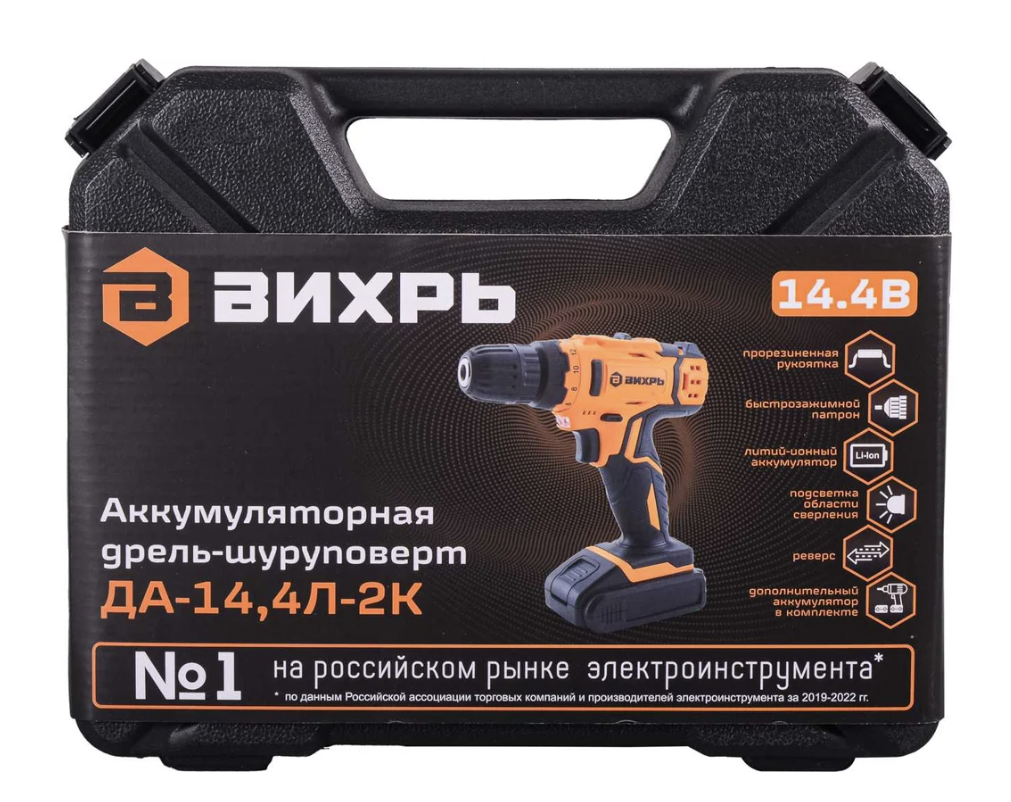 Дрель-шуруповерт аккумуляторная ДА-14.4Л-2К Вихрь, вихрь 72/14/8 (1 шт.)