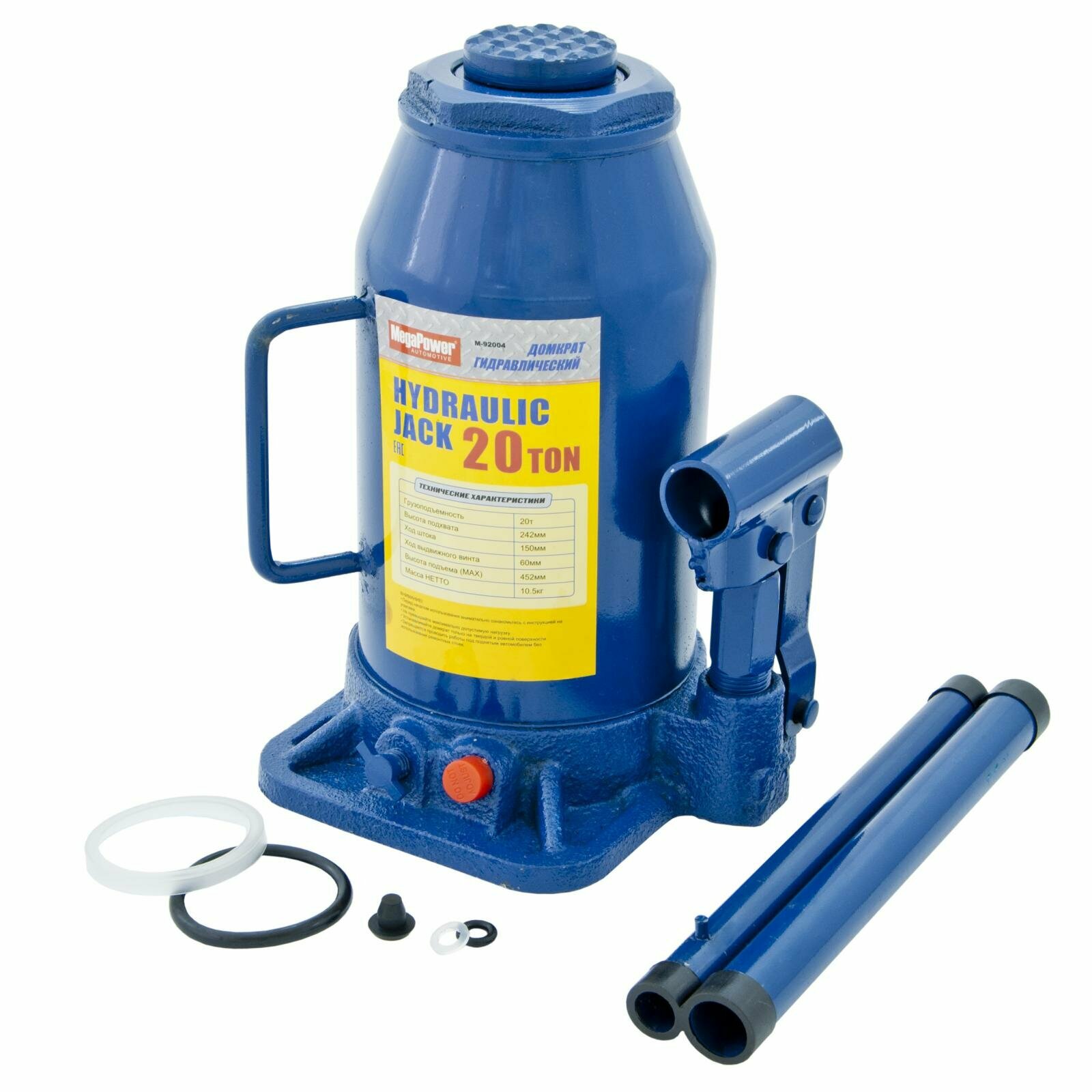 Домкрат гидравлический M-92004 бутылочный 20т (выс.подъема 242-452мм) с клапаном MEGAPOWER