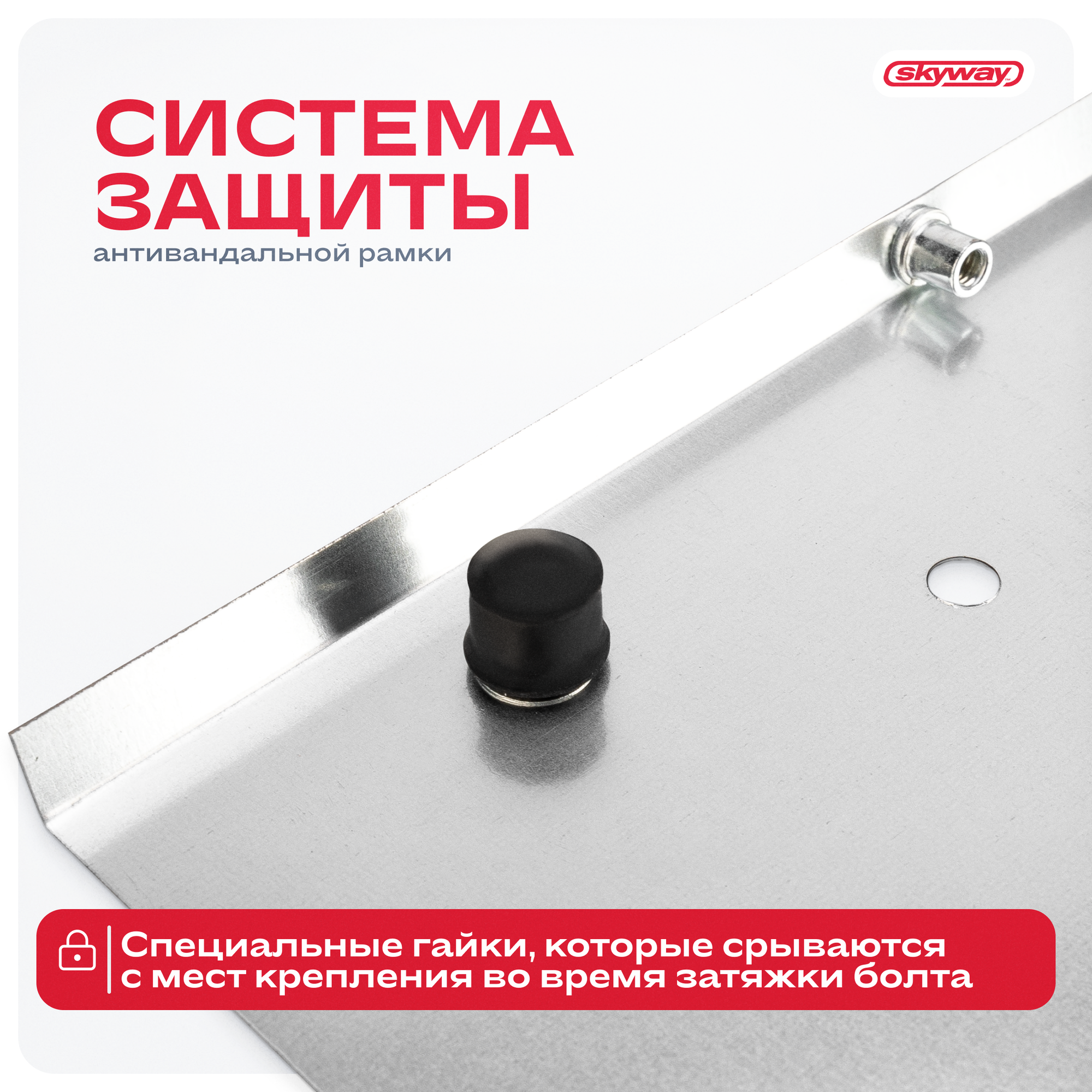 Рамка под номер "SKYWAY" (металл., антивандальная, хром) 1 083 ₽