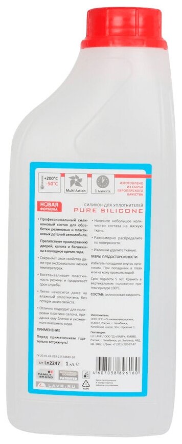 Силикон для уплотнителей LAVR, 1 л, Ln2247
