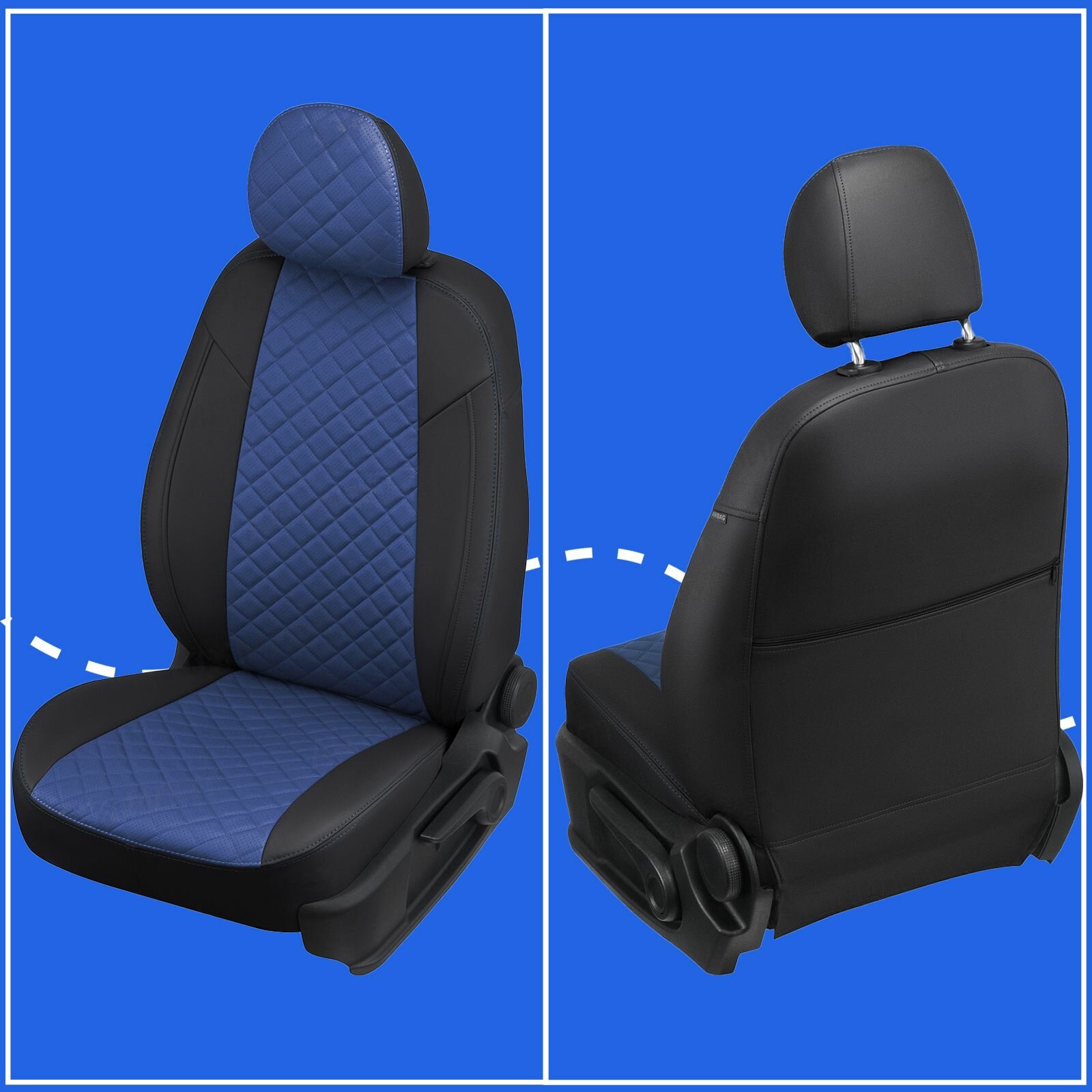 Комплект чехлов Автопилот Экокожа Mitsubishi Lancer 10 Sd с 07-11г. (комплектация invite) Черный + Синий