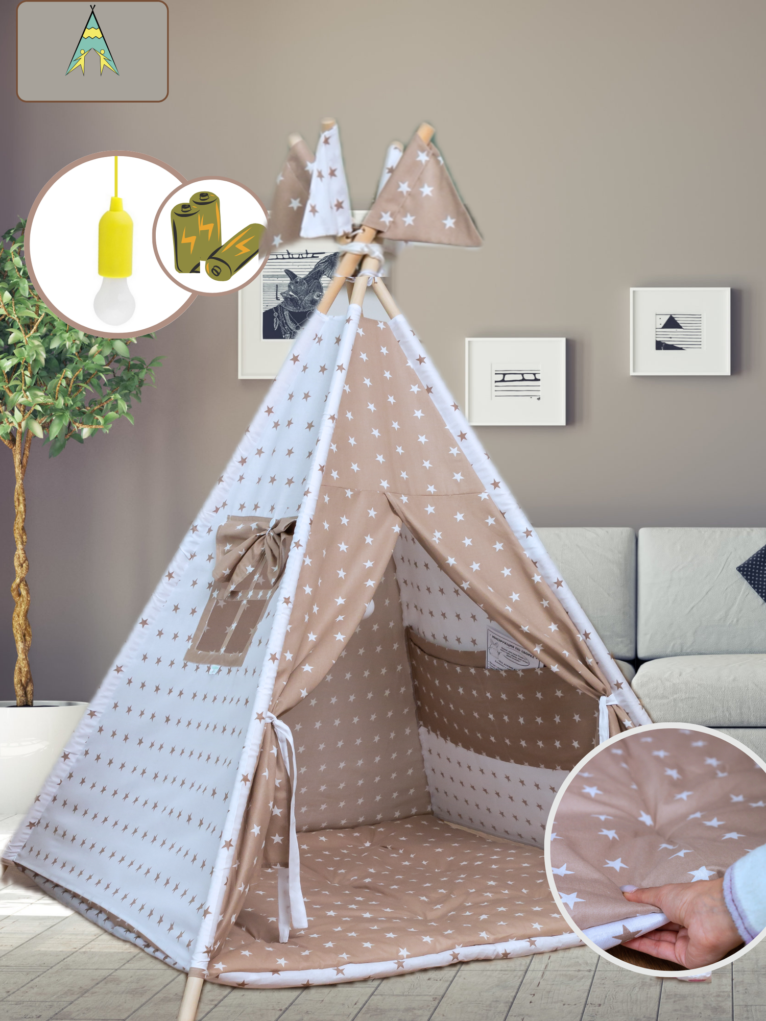 Вигвам детский Льняной с ковриком складная конструкция антискладывание лампочка ловец снов