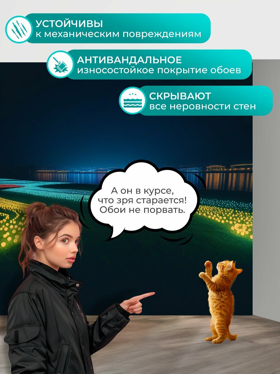 10 цен на Фотообои моющиеся ударопрочные "Ночной праздник с огнями и тенями" 300x300 см. флизелиновые на стену