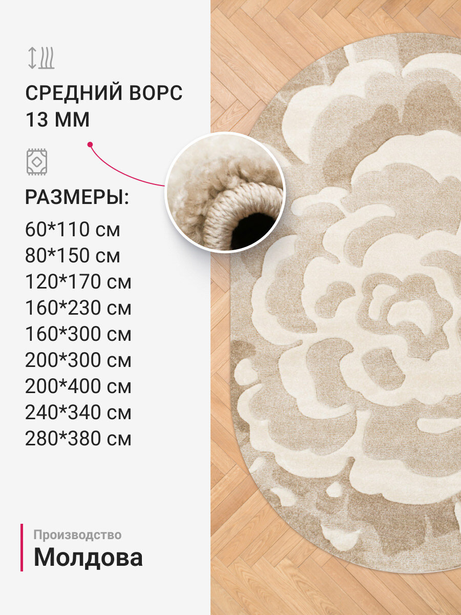 Ковер на пол 1,2 на 1,7 м в спальню, гостиную, бежевый Soho 1952-18455 овальный