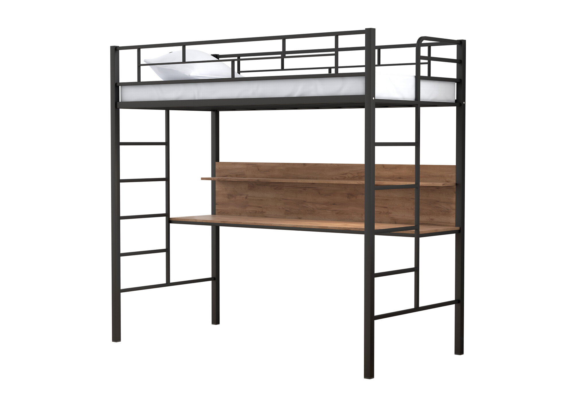 Кровать чердак "Амстердам" Черный со столом и матрасом Оптима Боннель Дуб крафт табак/ детская/ 90х190 см/ двухъярусная кровать с рабочей зоной/ для детей и взрослых/ железная/ металлическая/ двухэтажная/ взрослая/ высокая 24 980 ₽