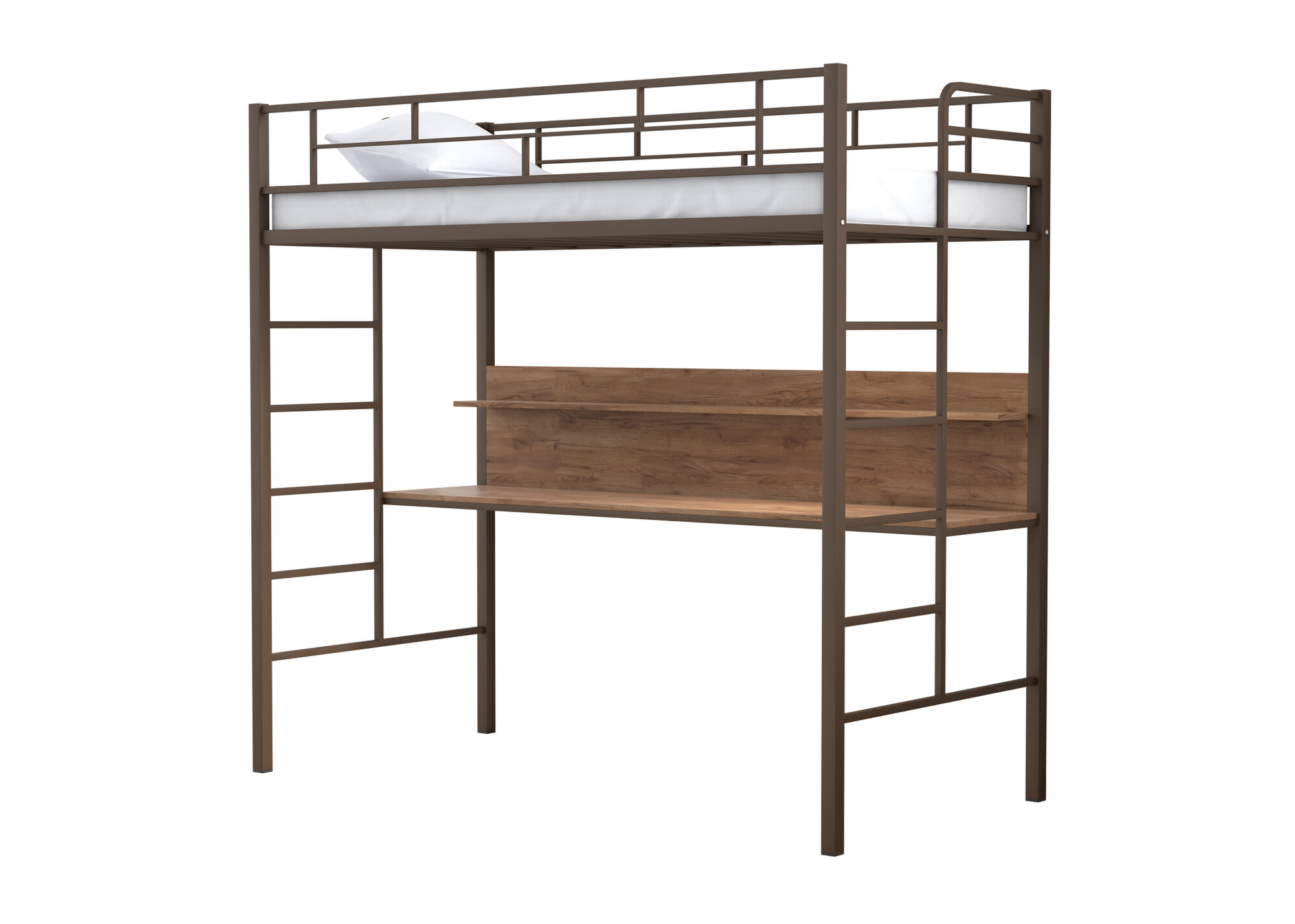 Кровать чердак "Амстердам" Коричневая со столом Венге/ детская/ 90х190 см/ двухъярусная кровать с рабочей зоной/ для детей и взрослых/ железная/ металлическая/ двухэтажная/ взрослая/ высокая