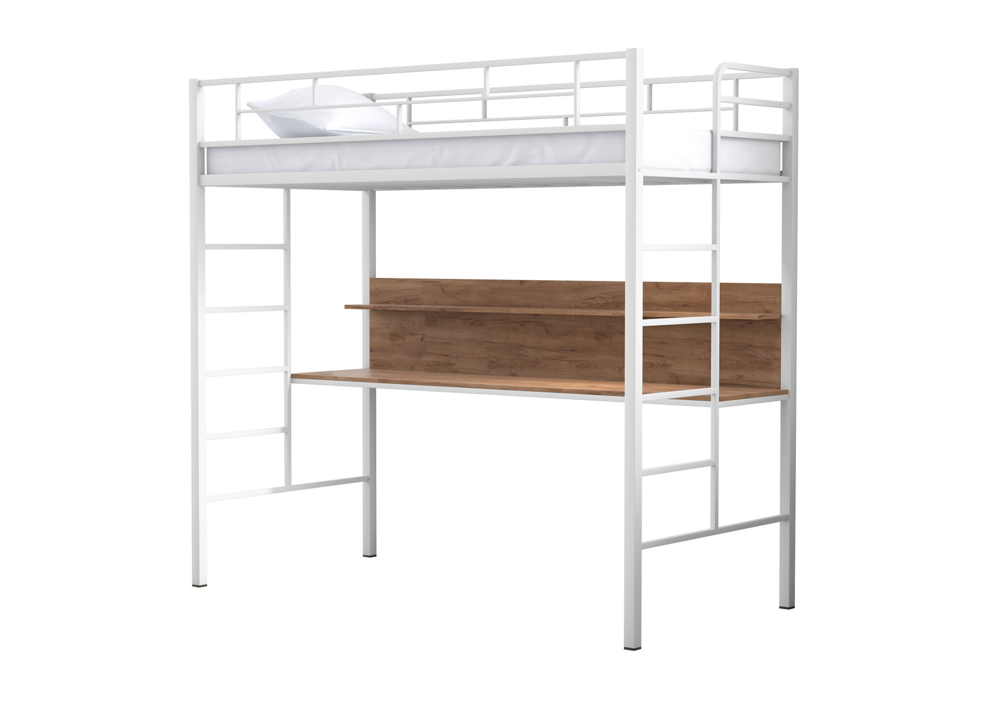 Кровать-чердак "Амстердам" Белый со столом Дуб крафт табак/ детская/ 90х190 см/ двухъярусная кровать с рабочей зоной/ для детей и взрослых/ железная/ металлическая/ двухэтажная/ взрослая/ высокая