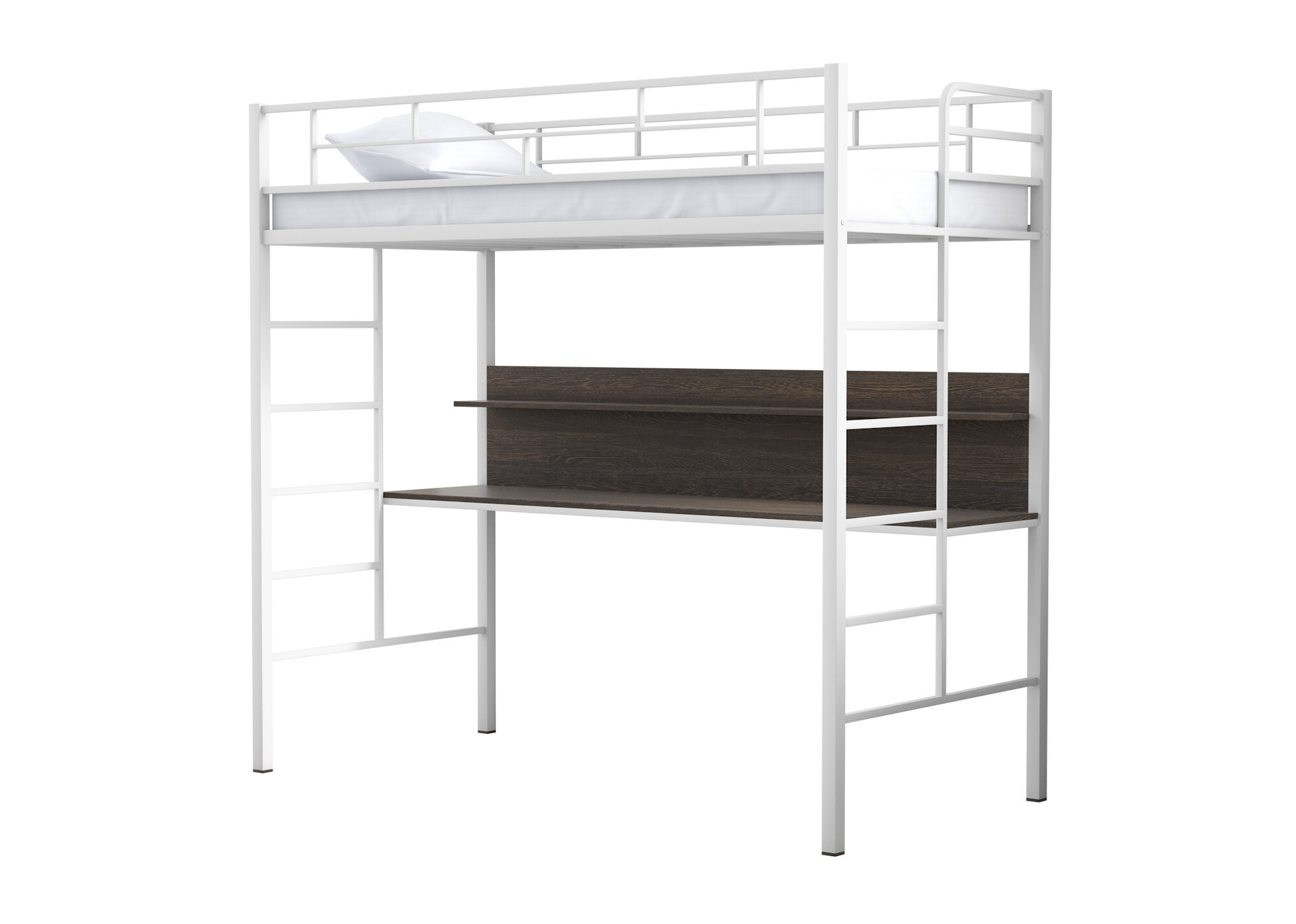 Кровать чердак "Амстердам-120" Белый со столом Венге/ детская/ 120х190 см/ двухъярусная кровать с рабочей зоной/ для детей и взрослых/ металлическая/ двухэтажная/ взрослая/ двуспальная