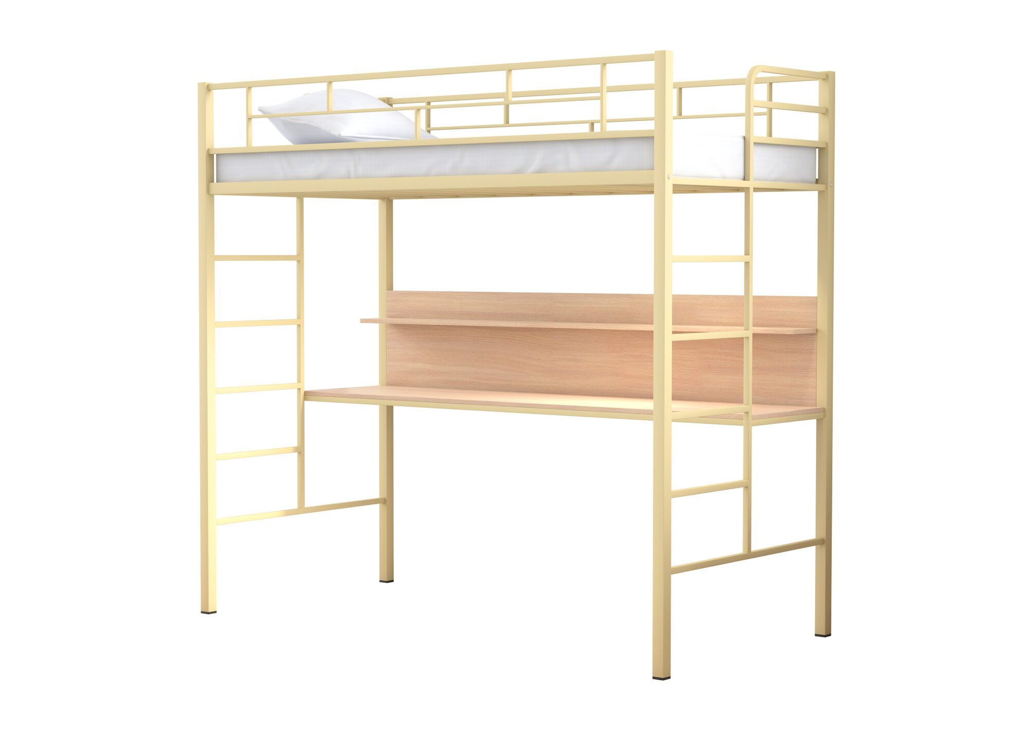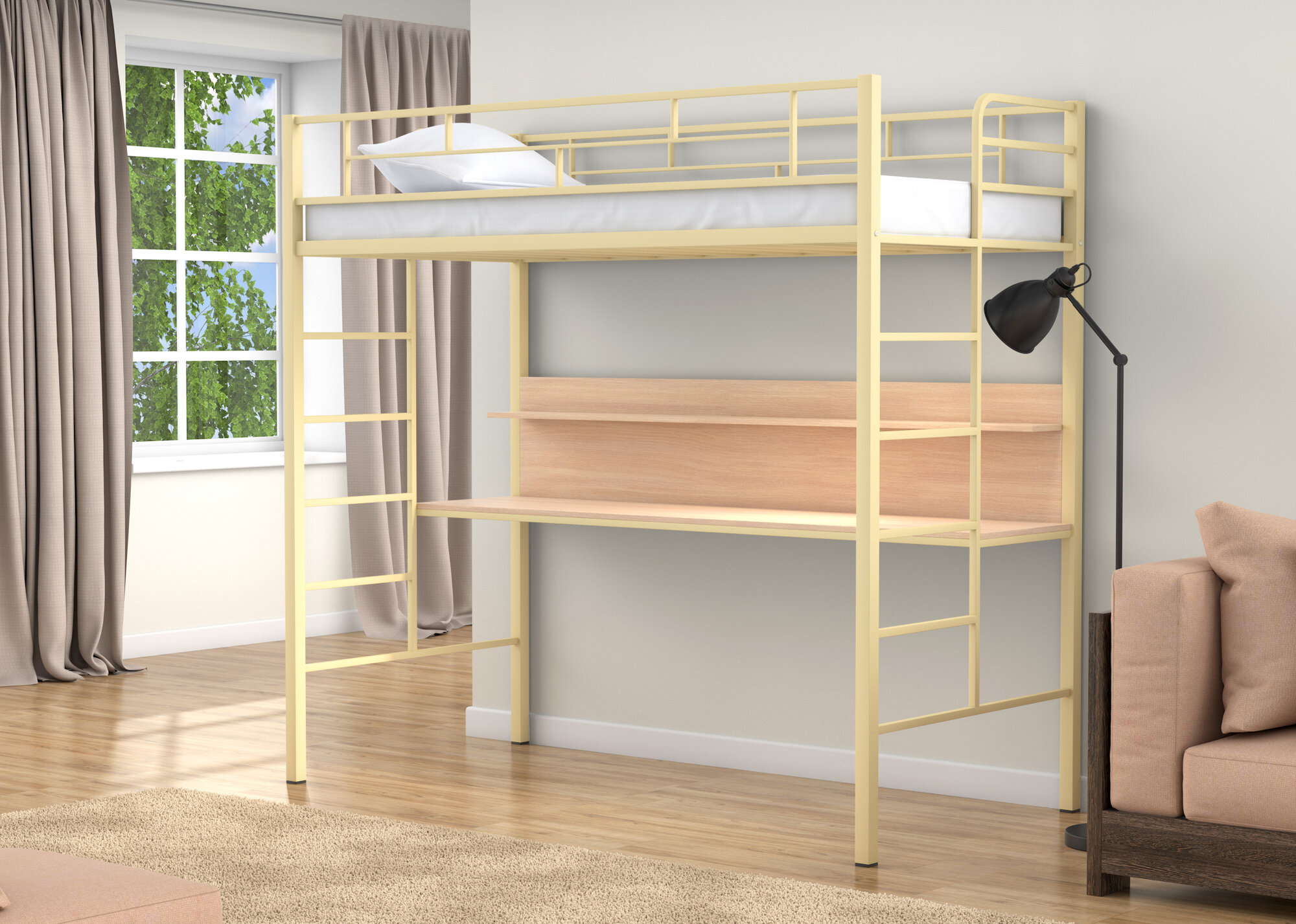 Кровать-чердак "Амстердам" Слоновая кость со столом Дуб молочный/ детская/ 90х190 см/ двухъярусная кровать с рабочей зоной/ для детей и взрослых/ железная/ металлическая/ двухэтажная/ взрослая