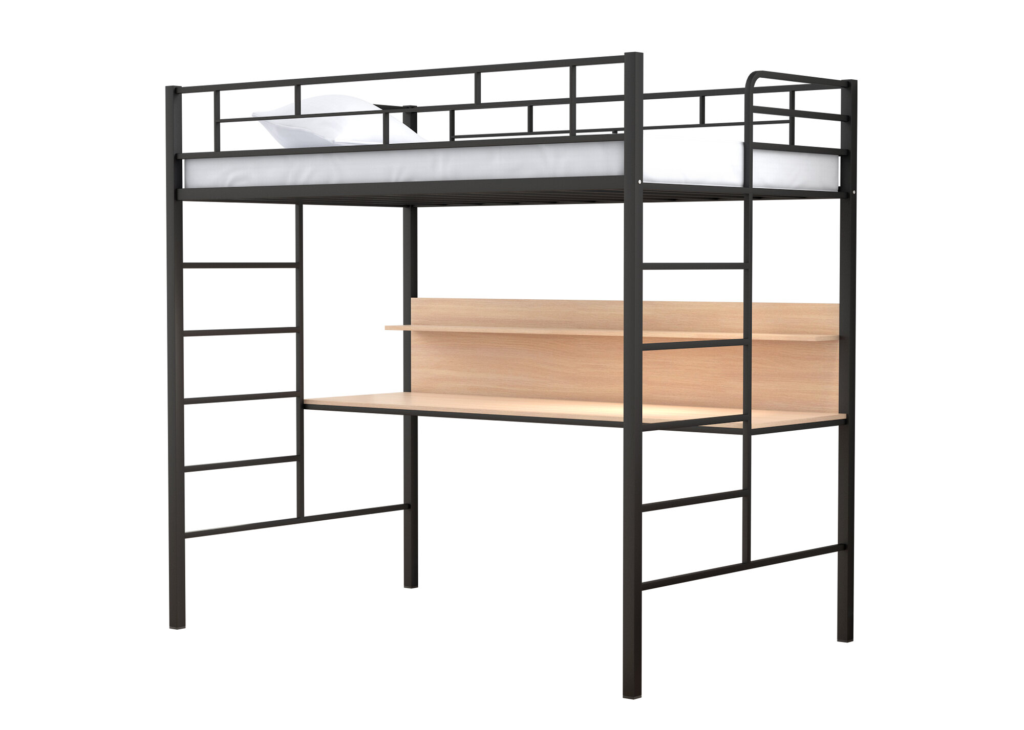 Кровать чердак "Амстердам" Черный со столом Дуб молочный/ детская/ 90х190 см/ двухъярусная кровать с рабочей зоной/ для детей и взрослых/ железная/ металлическая/ двухэтажная/ взрослая/ высокая