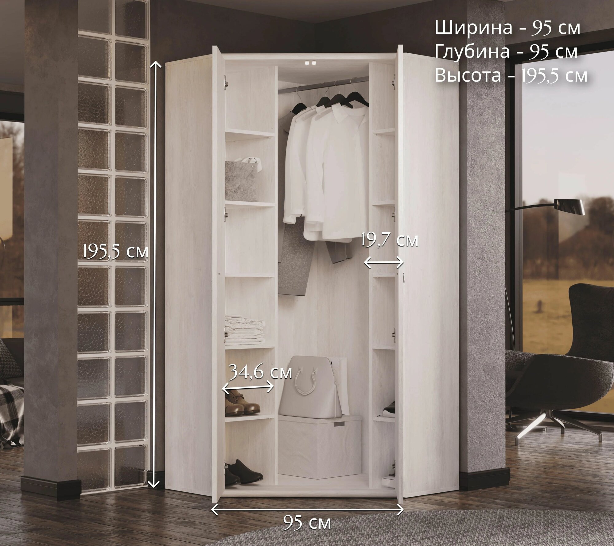 Шкаф угловой 2дв. 95х95х195,5см индиана JSZFN 2d (Сосна каньйон), 4уп. информация: