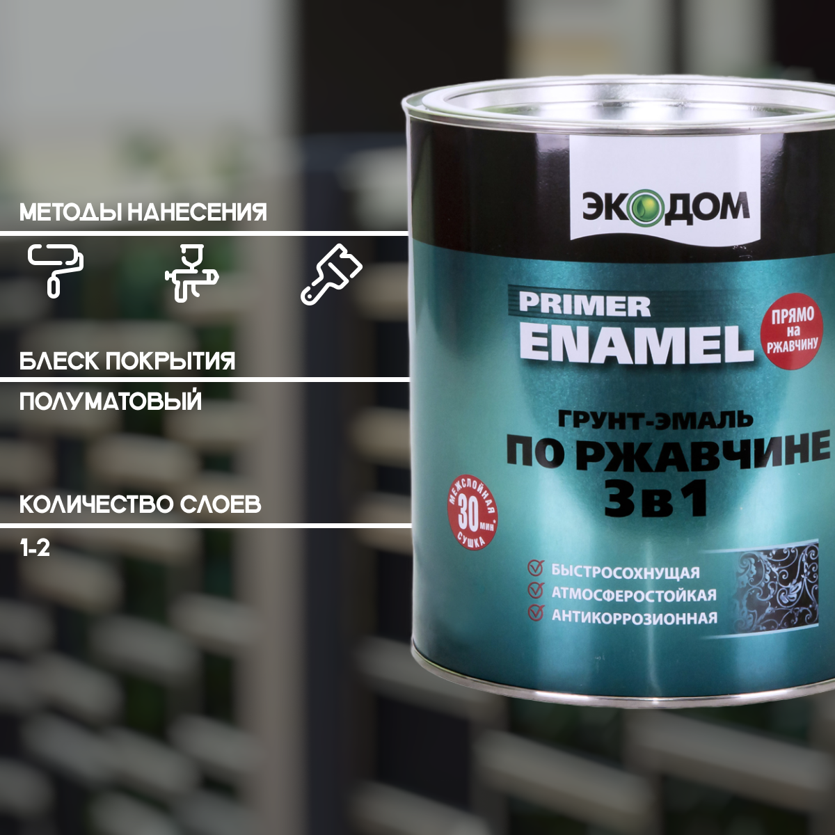 ЭкоДом грунт-эмаль по ржавчине 3в1 (полуматовая, зеленый мох, RAL 6005, 2,2 кг) информация: