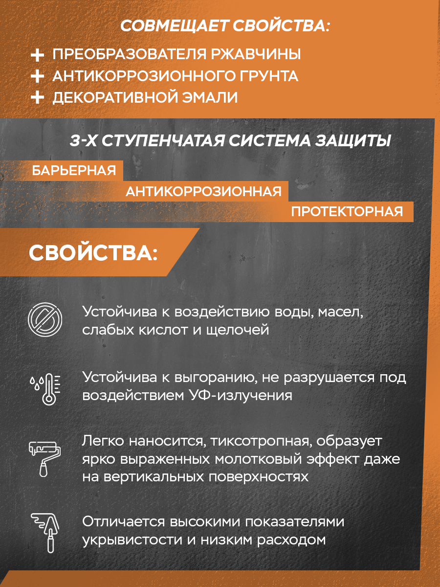 Грунт-эмаль по ржавчине 3 в 1 молотковая серебристая, 2 л 4 284 ₽