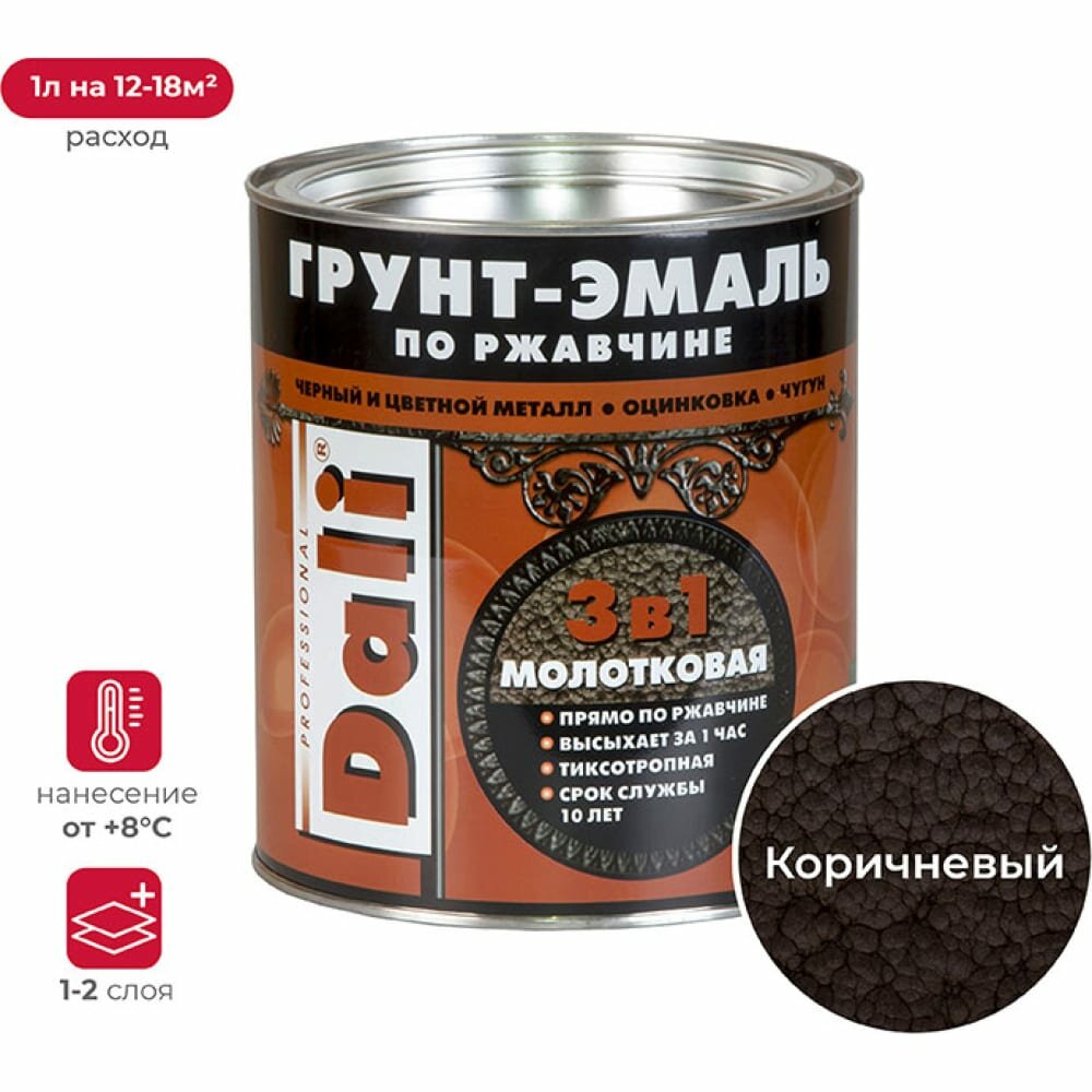 DALI грунт- эмаль ПО ржавчине 3 В 1 молотковая коричневая 2 Л 3 29334 информация: