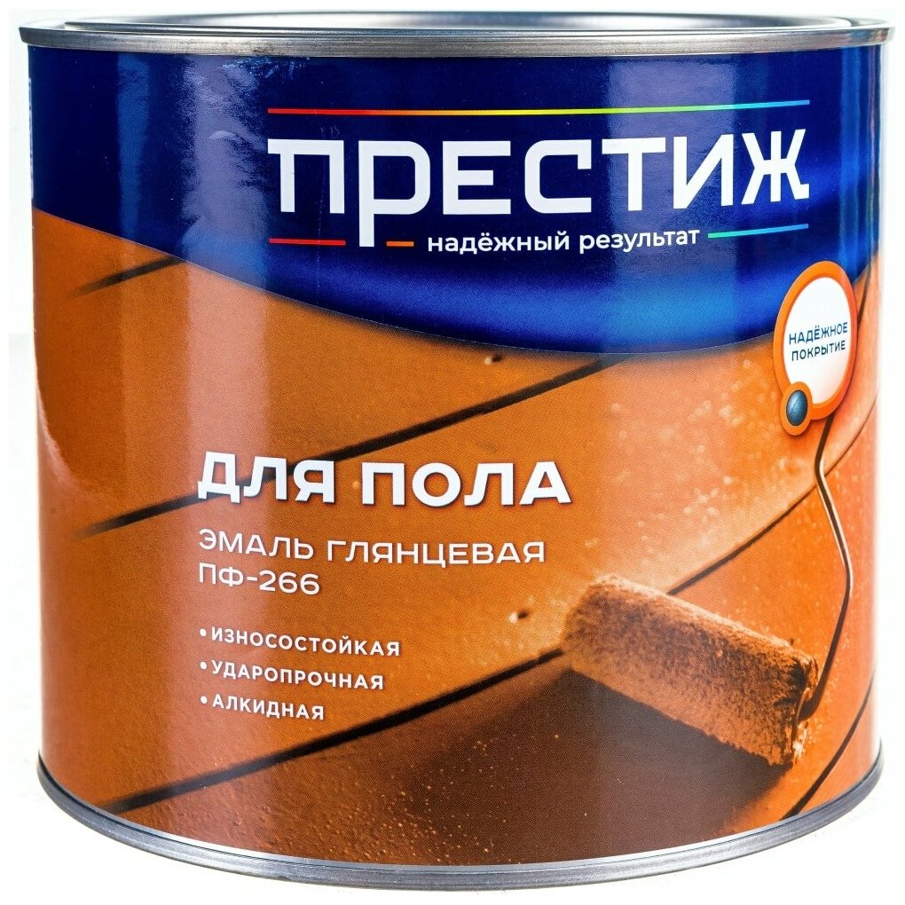 Эмаль ПФ-266 для пола Престиж, алкидная, глянцевая, 1,9 кг, золотисто-коричневая, 1шт, металлическая банка