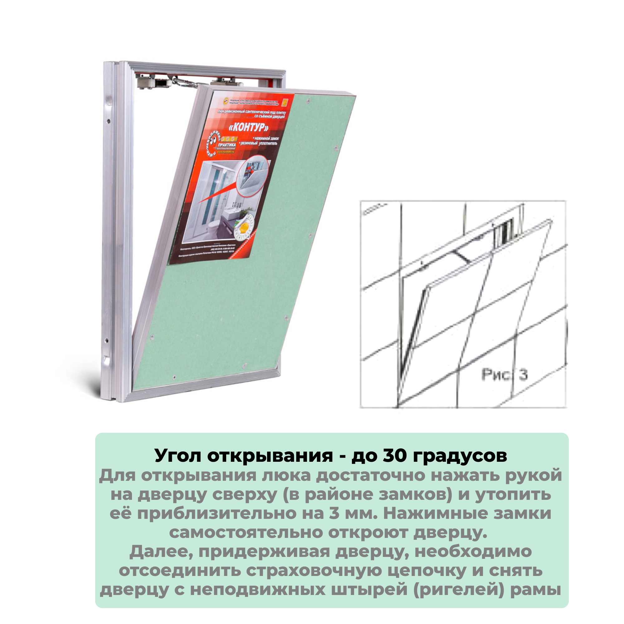 Люк «Контур» 30-40 (300х400 мм) под плитку и под покраску со съёмной дверцей на цепочке Практика информация: