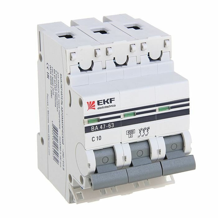 Выключатель автоматический EKF mcb4763-3-10C-pro 10A тип C 4.5kA AC 3П 400В 3мод белый (упак.:1шт)