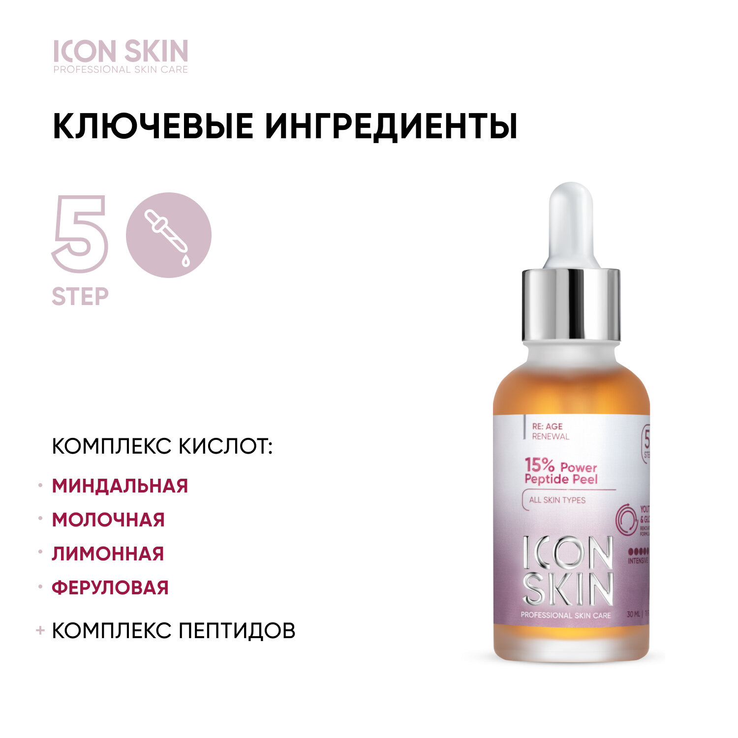ICON SKIN / Антивозрастной пилинг для лица с 15% комплексом кислот и пептидами для всех типов кожи, 30 мл
