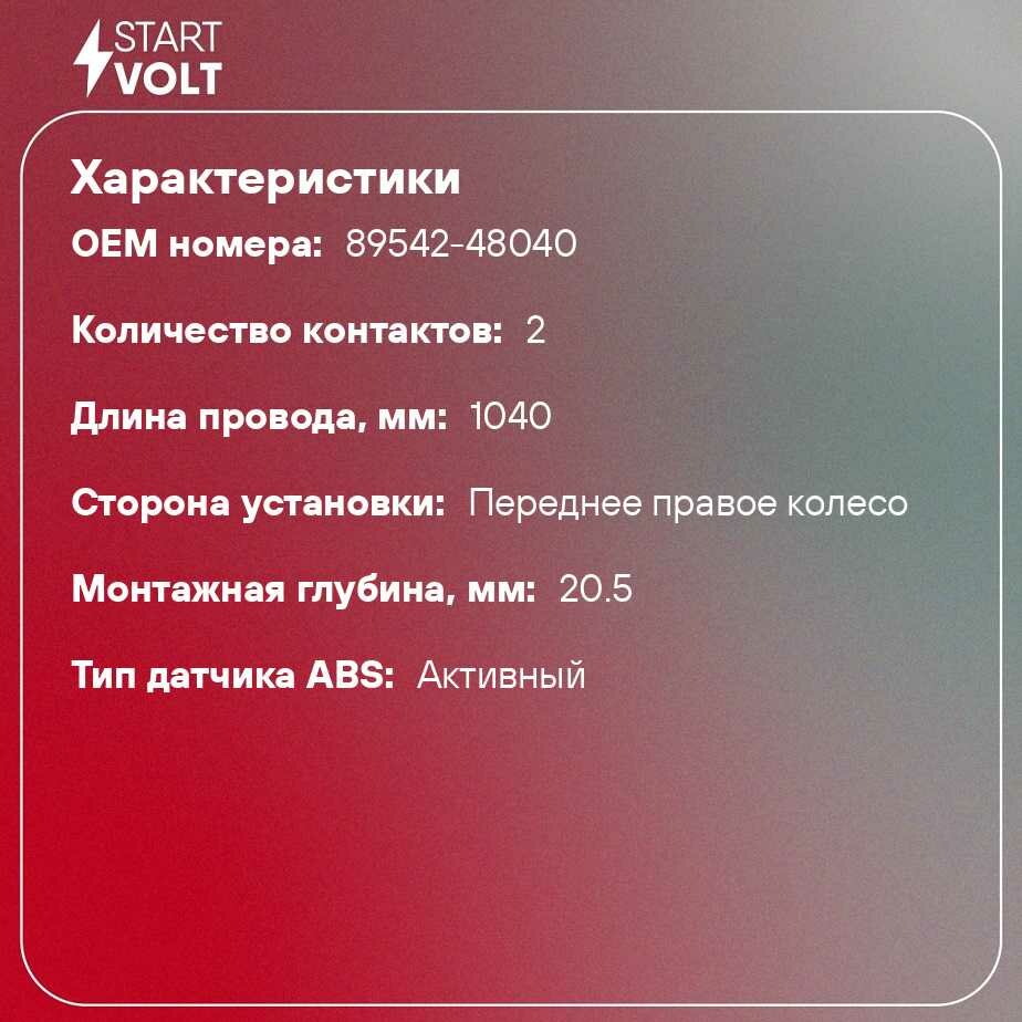 Датчик Abs Для А/М Toyota Highlander (08-) Пер. Прав. (Vs-Abs 1920) STARTVOLT арт. vs-abs-1920
