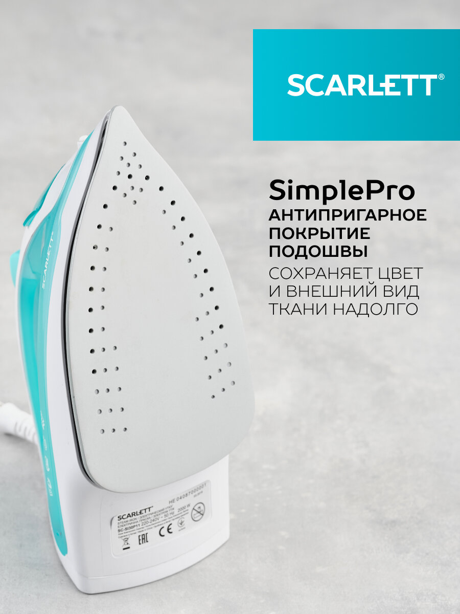 Утюг Scarlett SC-SI30P11, 2000 Вт, антипригарная подошва SIMPLEPRO, защита от накипи ANTI-CALC, 120г/минуту.