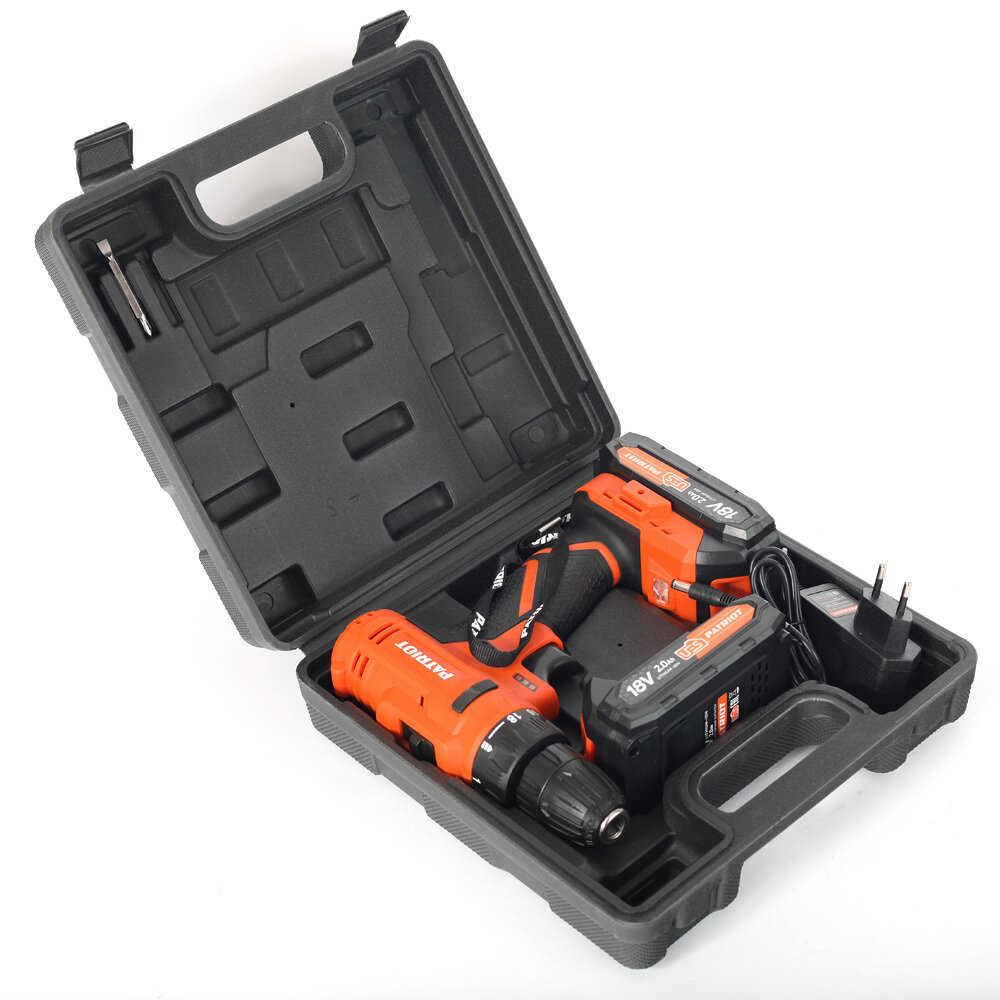 Аккумуляторная дрель-шуруповерт PATRIOT BR 181UES Li-Ion 2.0 А·ч 18 В х2 кейс 29 Н·м