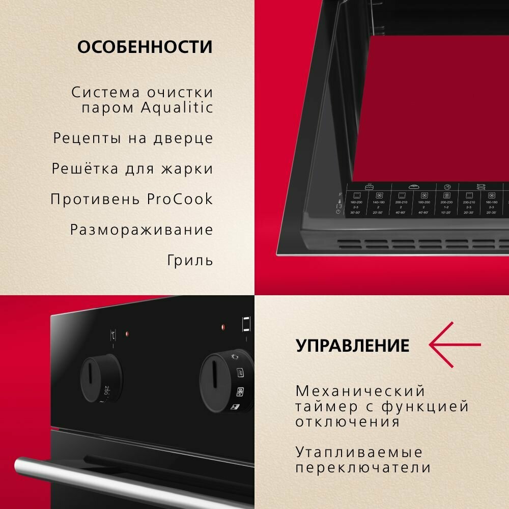Духовой шкаф встраиваемый LEX EDM 077 C IV, 60 см, с конвекцией, механические ручки, объем 60 л, аналоговый таймер, телескопические направляющие.