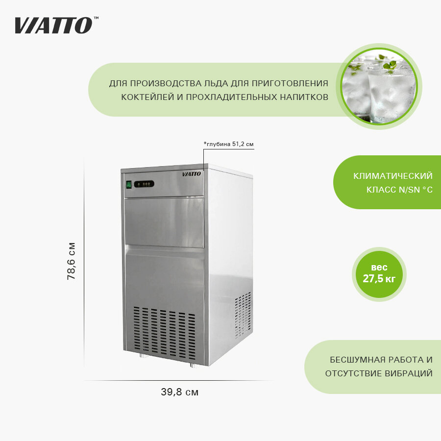 Льдогенератор Viatto Commercial VA-IM-30AS, генератор льда для бара и кафе информация: