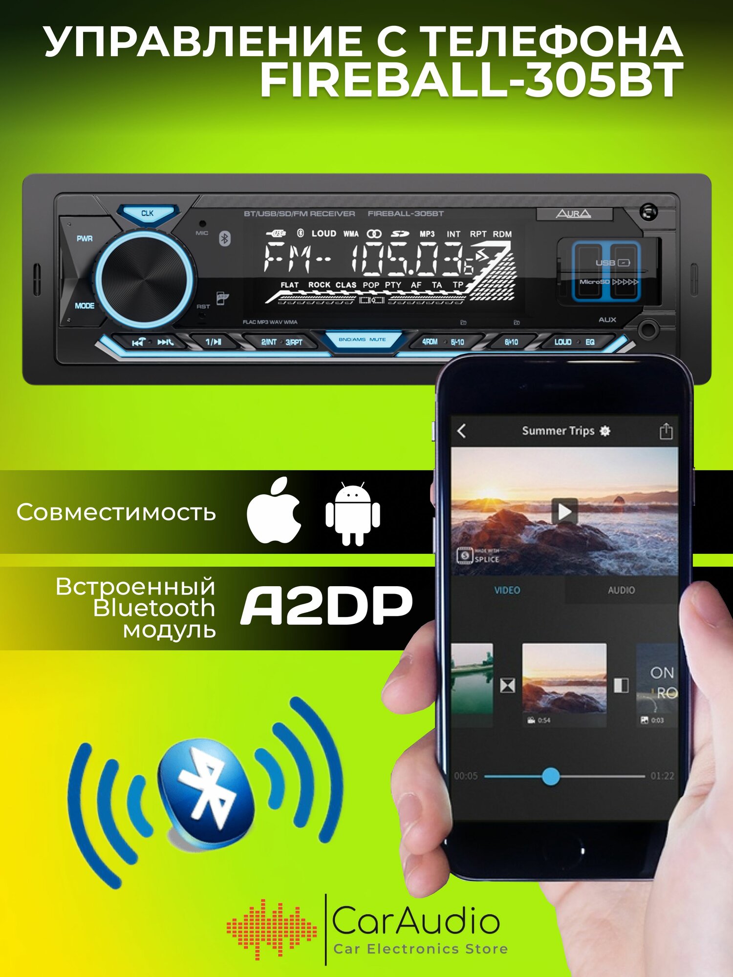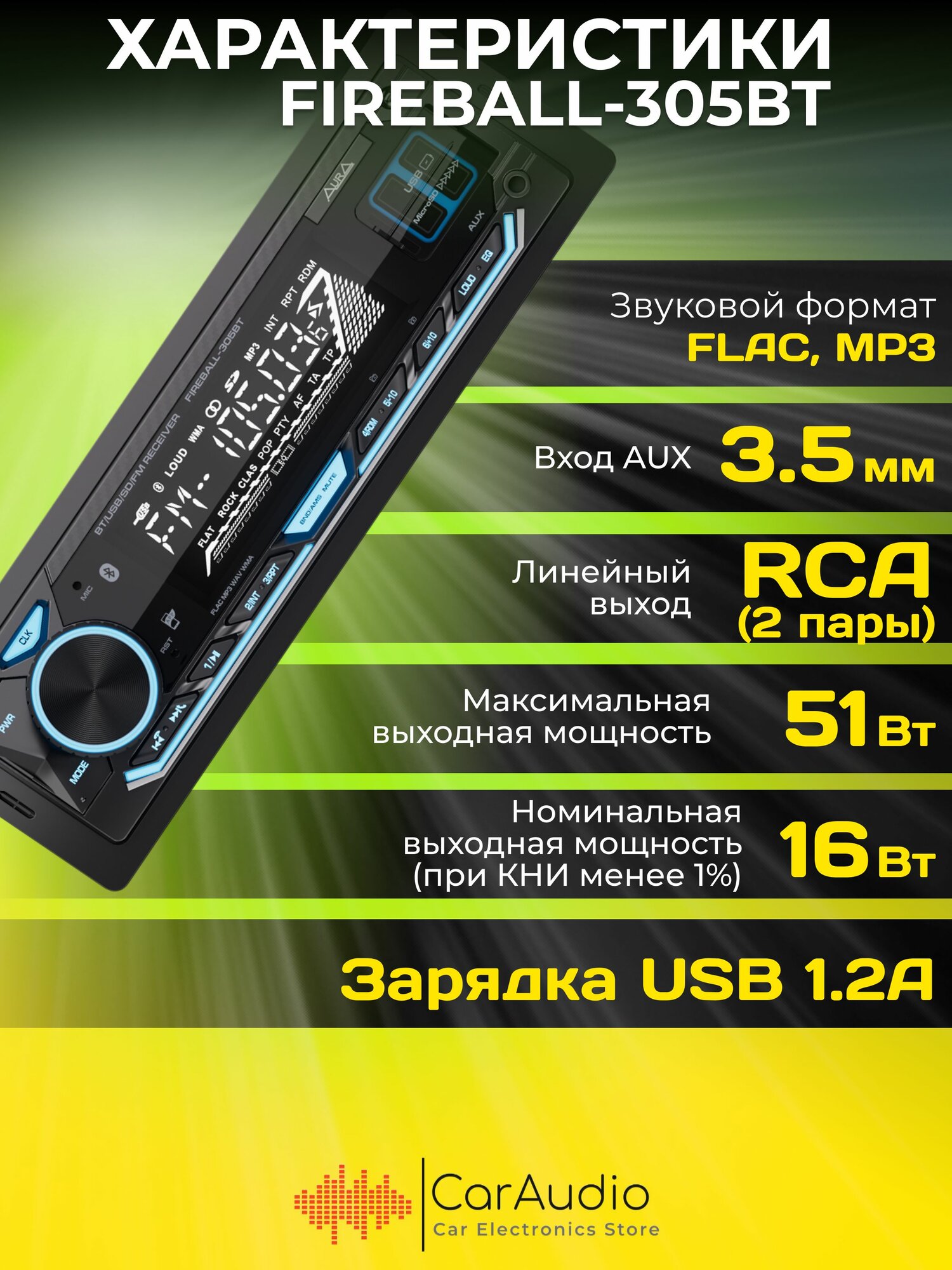 Отзывы на Магнитола Aura FIREBALL-305BT USB/SD-ресивер, подсветка бирюзовая