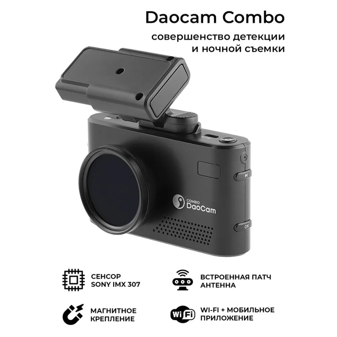 Видеорегистратор с радар детектором и двумя камерами для автомобиля DaoCam Combo Wi-Fi, GPS, ночная съемка информация: