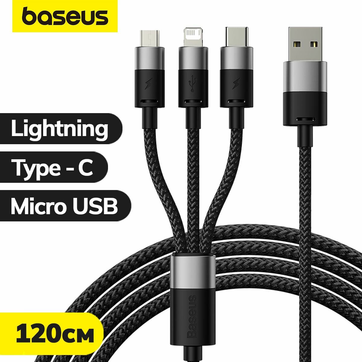 USB-кабель 3 в 1 Baseus StarSpeed Series, USB-C + Micro + Lightning 3,5A, 1,2 м (черный )
