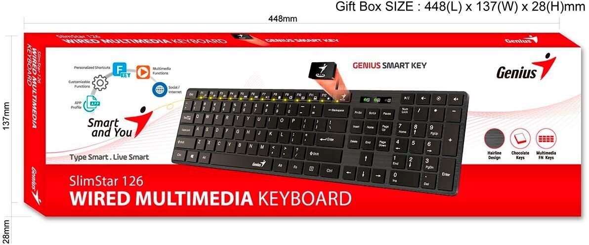 Клавиатура Genius SlimStar 126, Black, тонкая, 109кл., SmartGenius, USB