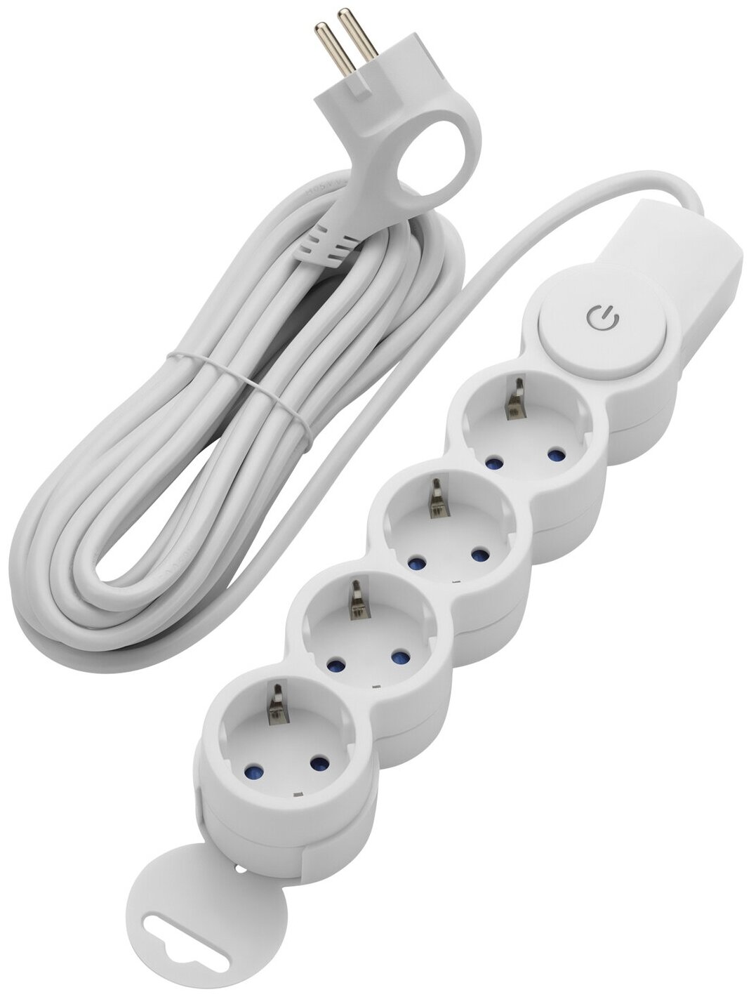 Удлинитель Düwi 3 розетки 5 м ПВС 3х0,75 кв.мм 10 А 2,2 кВт с кнопкой белый (32009 0)