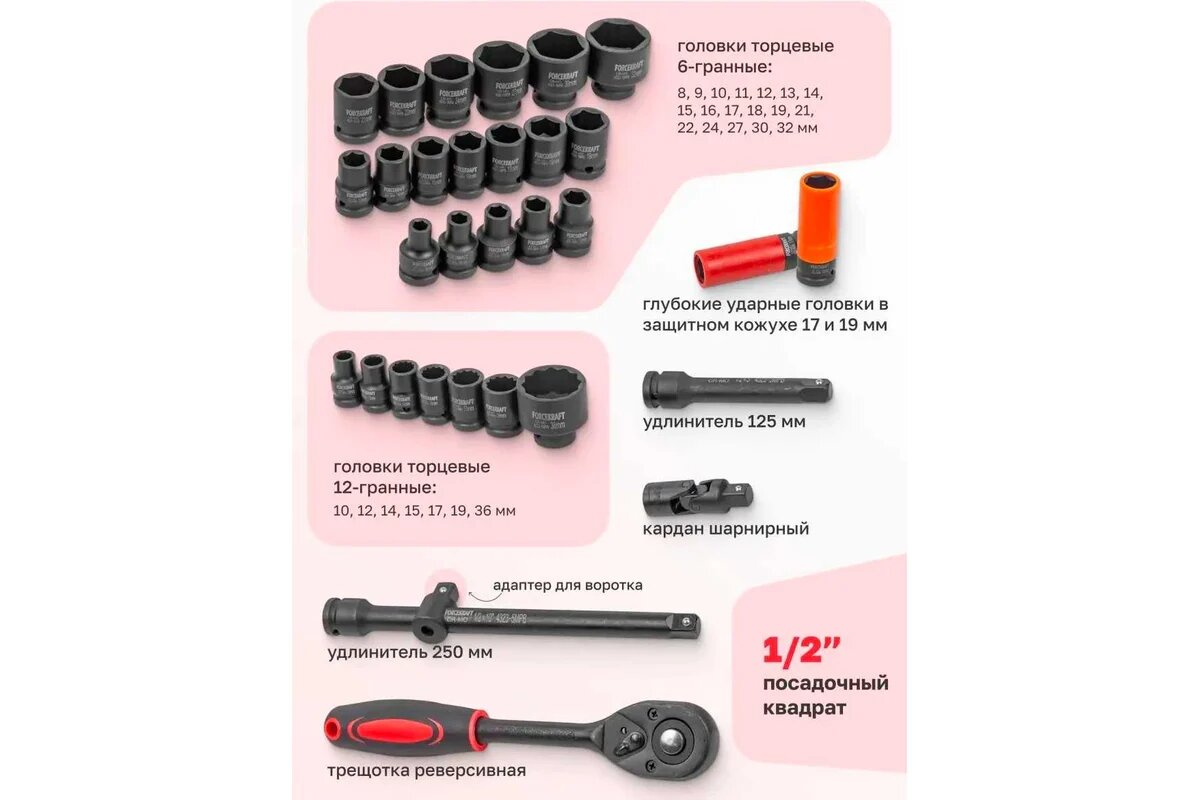 Набор инструментов ударных 32пр 1 2 6гр 10 32мм Cr Mo информация: