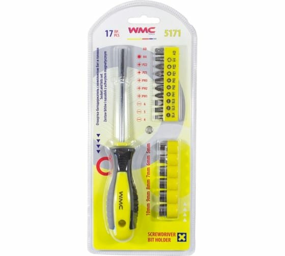 Мы выбрали 10 лучших цен на Отвертка-битодержатель WMC-5171: с комплектом бит и головок, 17пр. WMC TOOLS. Перед тем как купить Отвертка-битодержатель WMC-5171: с комплектом бит и головок, 17пр. WMC TOOLS посмотрите найденные предложения из Яндекс Маркета и других сайтов на основе XML фидов.