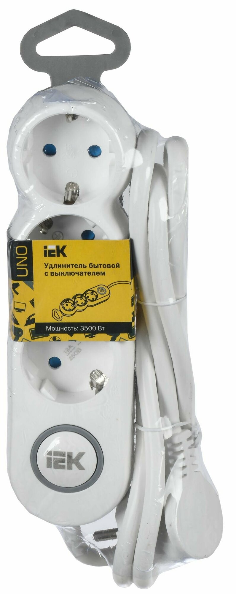 Удлинитель IEK WYP53-16-03-03-ZK, 3 розетки, 3 м, с/з, 16А / 3500 Вт белый