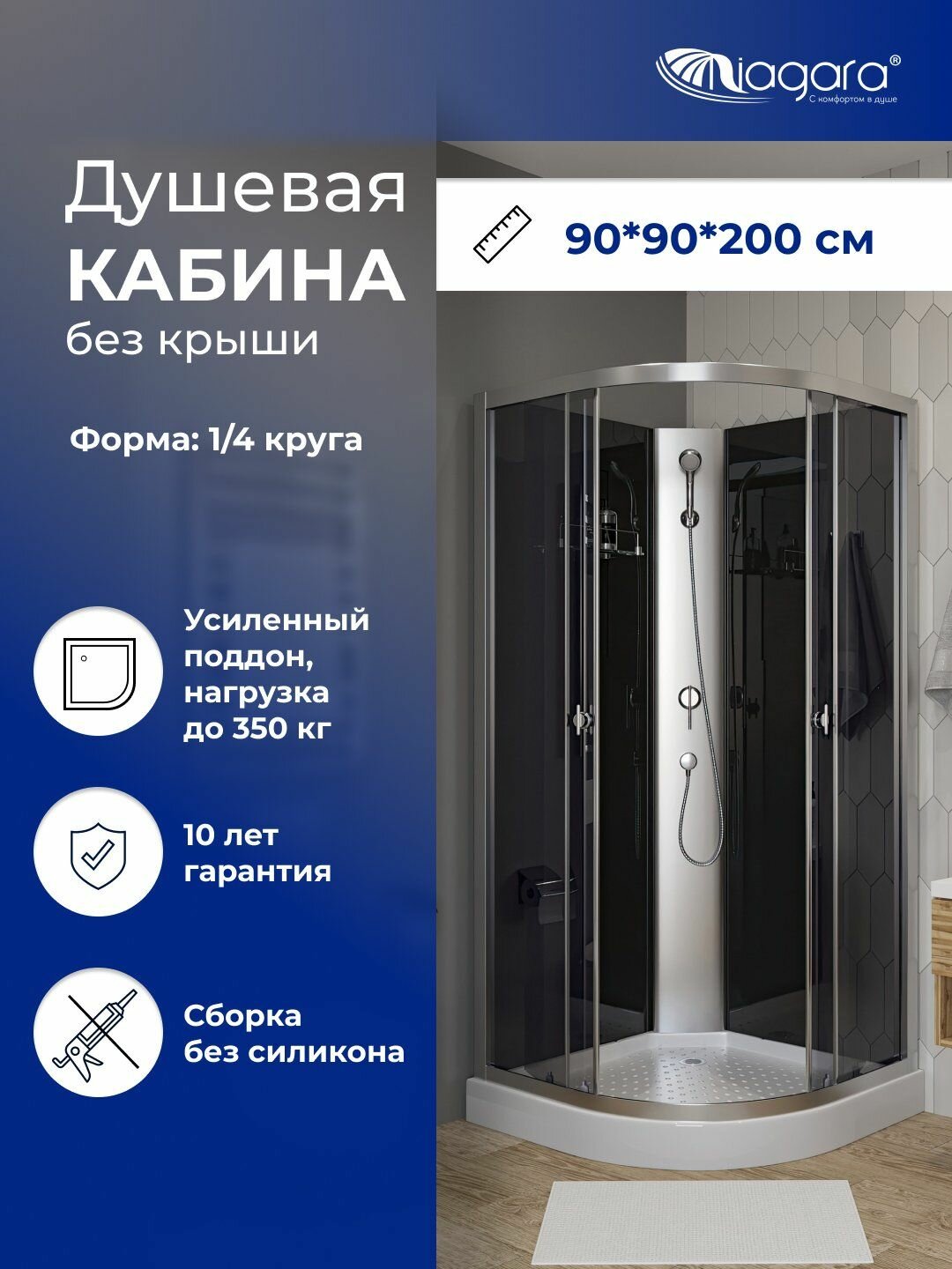 Душевая кабина Niagara Eco 90x90 низкий поддон, тонированная, без крыши информация: