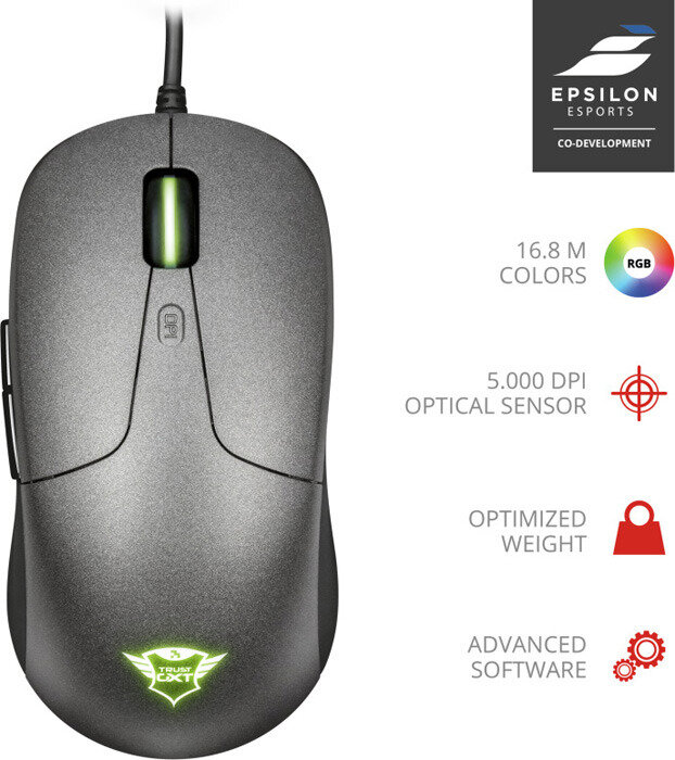 Проводная мышь Trust GXT 180 KUSAN 5000dpi, USB 2.0, 107 г, серый 22401 информация: